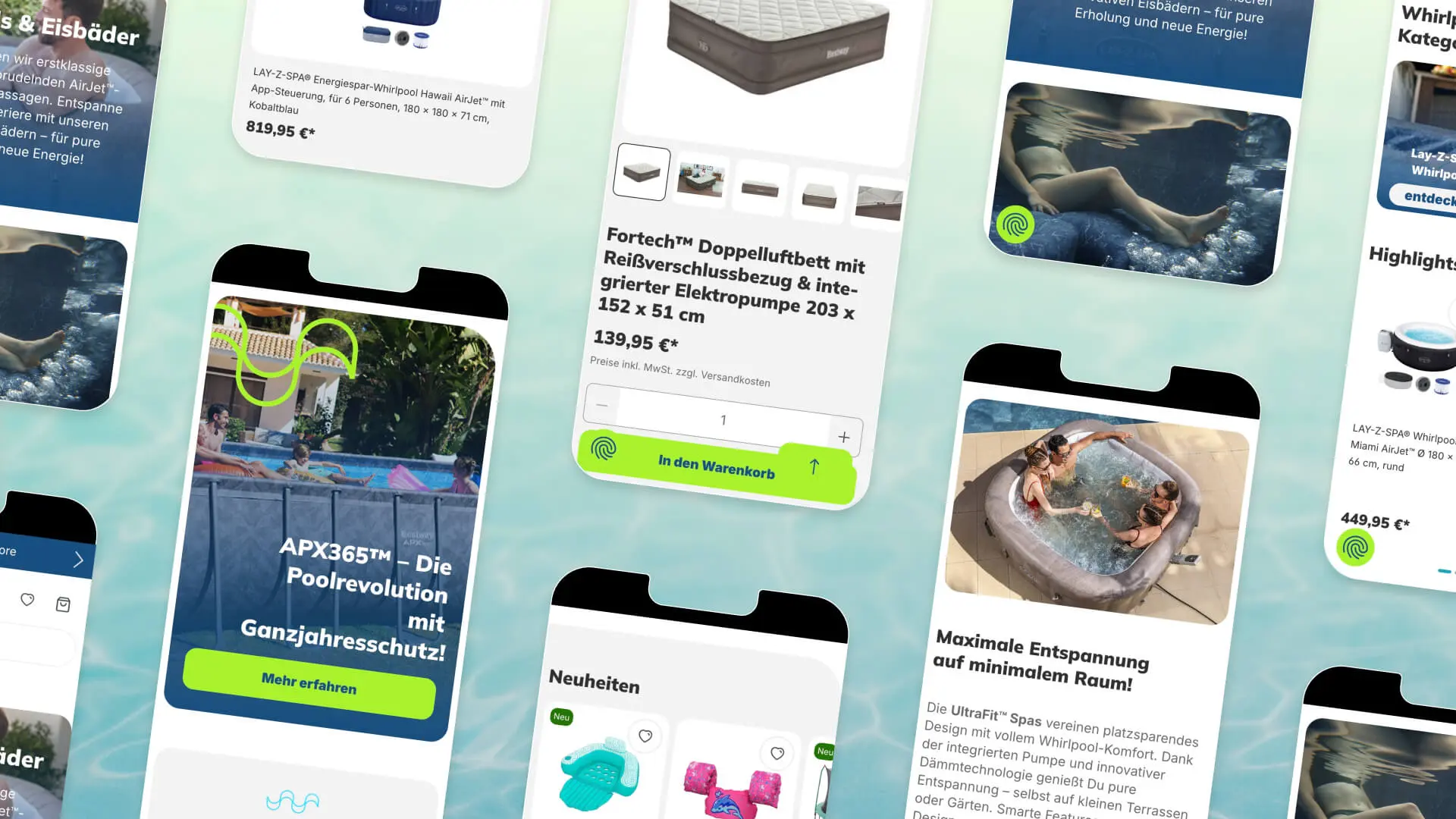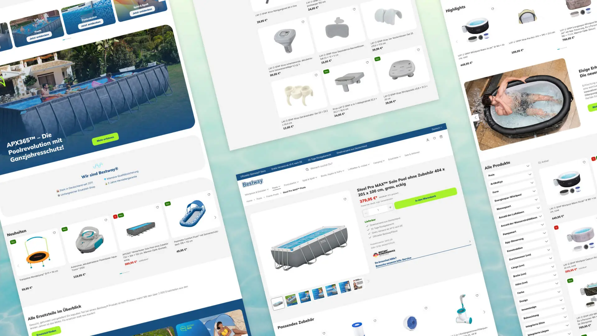 In addition to the migration to Shopware 6, the relaunch of the Bestway online shop was also characterized by the objective of creating a better brand experience. As analyses showed higher mobile access figures, a mobile-first approach for a smooth shopping experience on mobile devices was prioritized from the outset. The structure of products and categories was also simplified to significantly improve the user experience on the front end. Overall, the target group-oriented modernization not only included functional aspects, but also the playfulness and ‘fun factor’ that the brand and products exude.