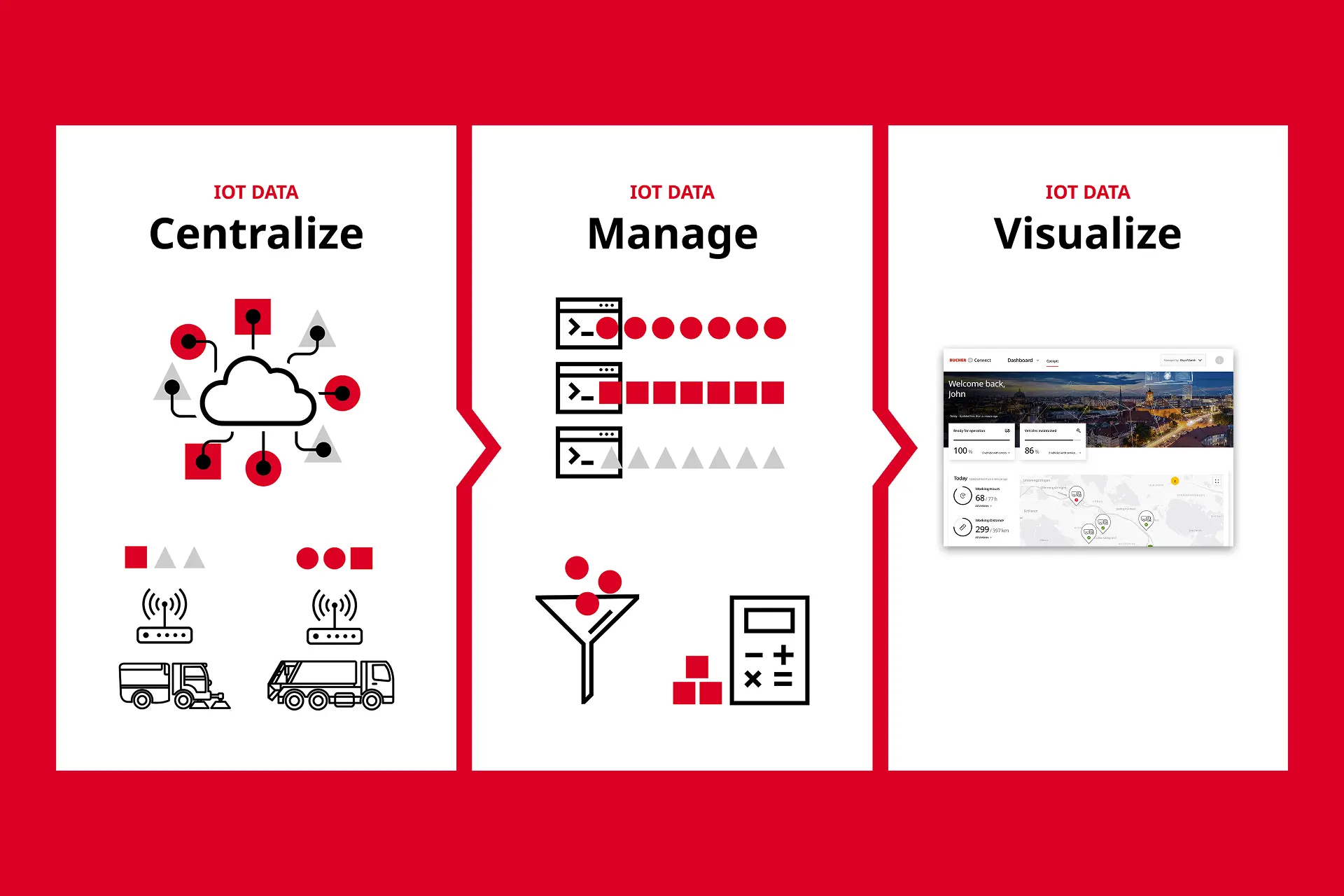 Bucher Connect is a digital service platform enabling municipalities worldwide to optimize cleaning fleet management, boost vehicle readiness, and improve efficiency. Using IoT real-time data, a user-friendly interface, and smart KPIs, it empowers cities to strengthen public services, cut resource use, and advance environmental goals. Connect builds digital business relationships, creating a holistic 360° vehicle view and providing precise data to all involved, for optimized processes across municipalities, rental firms, service providers, and manufacturers – fulfilling the core mission of clean, safe, and sustainable urban environments.