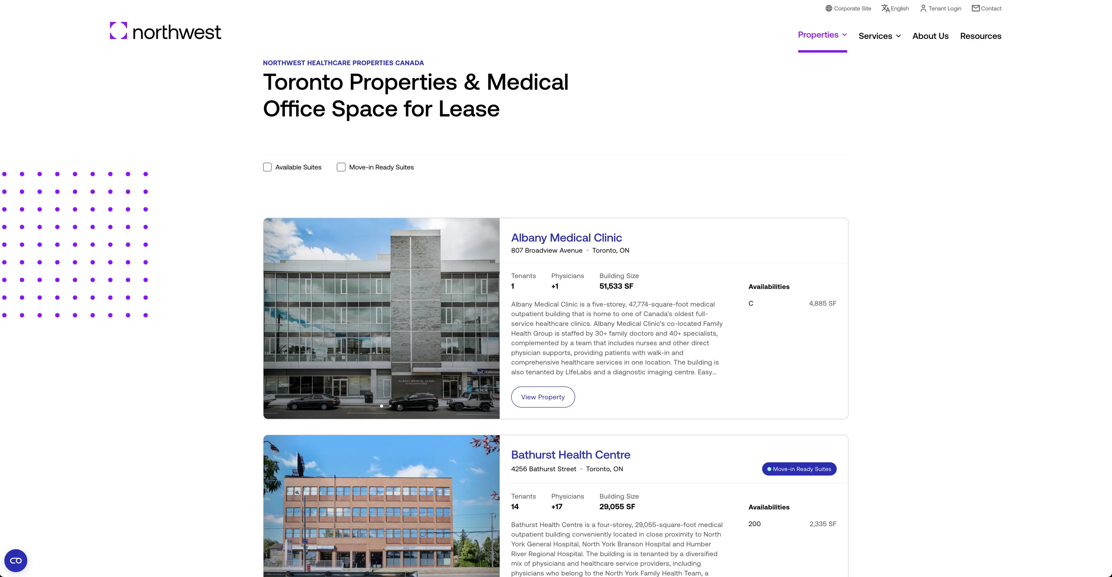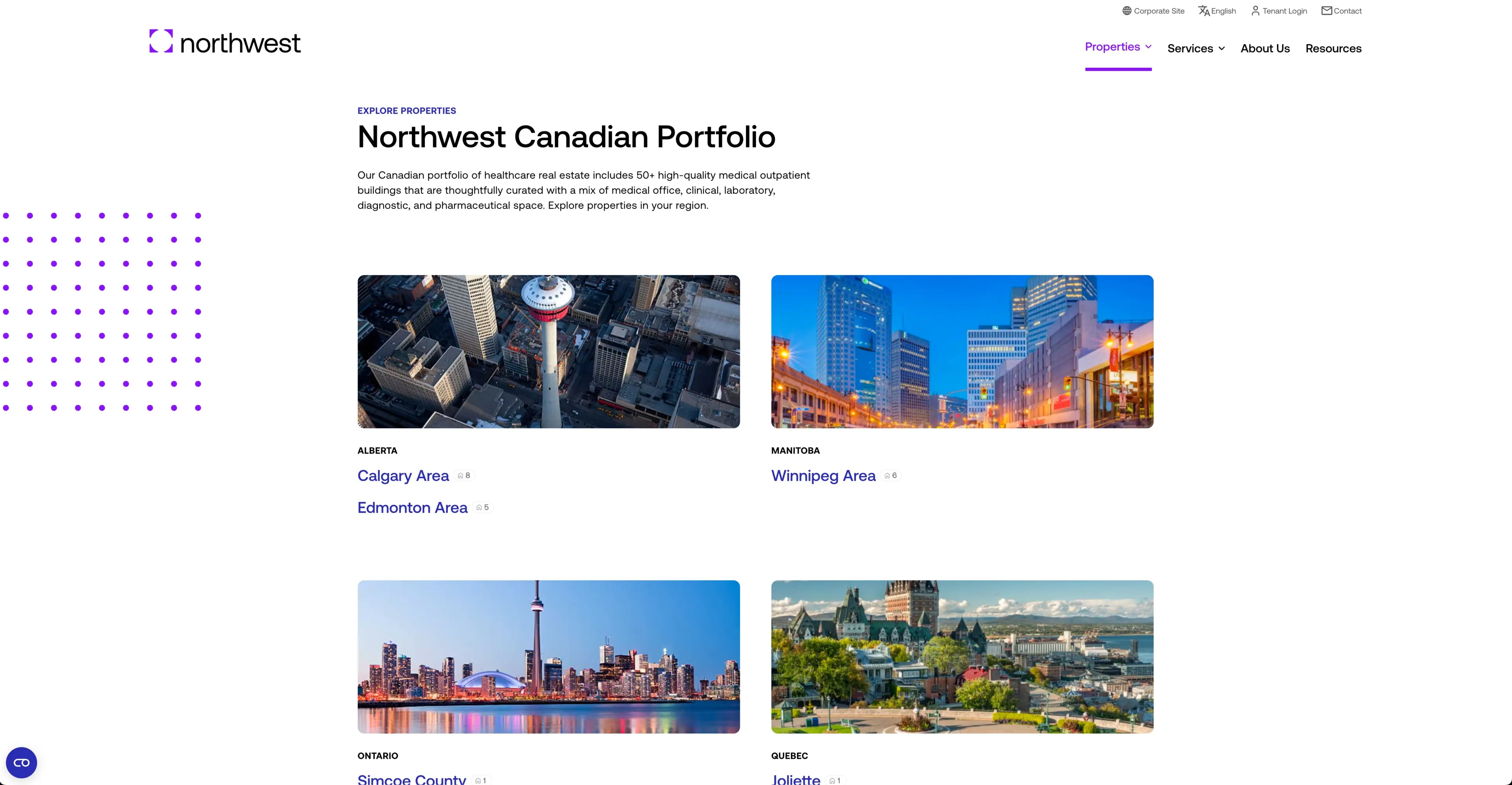 Northwest is one of the world’s leading medical real estate asset managers, providing solutions to physicians and healthcare professionals. Dog and Pony Studios built an easy-to-manage site covering their broad services and available properties.