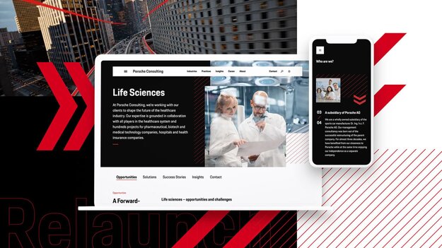 The relaunch for Porsche Consulting impresses with its well-balanced integration of animation and content, guiding users through the website in an inspiring way. The design embraces the element of movement, making change processes tangible and shaping the user experience in a lasting and innovative manner.