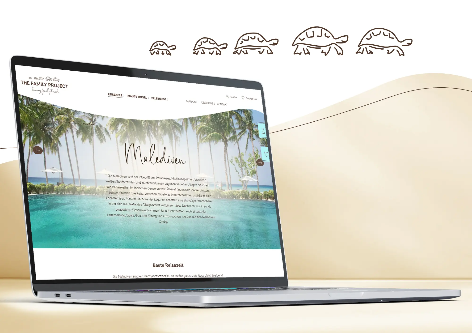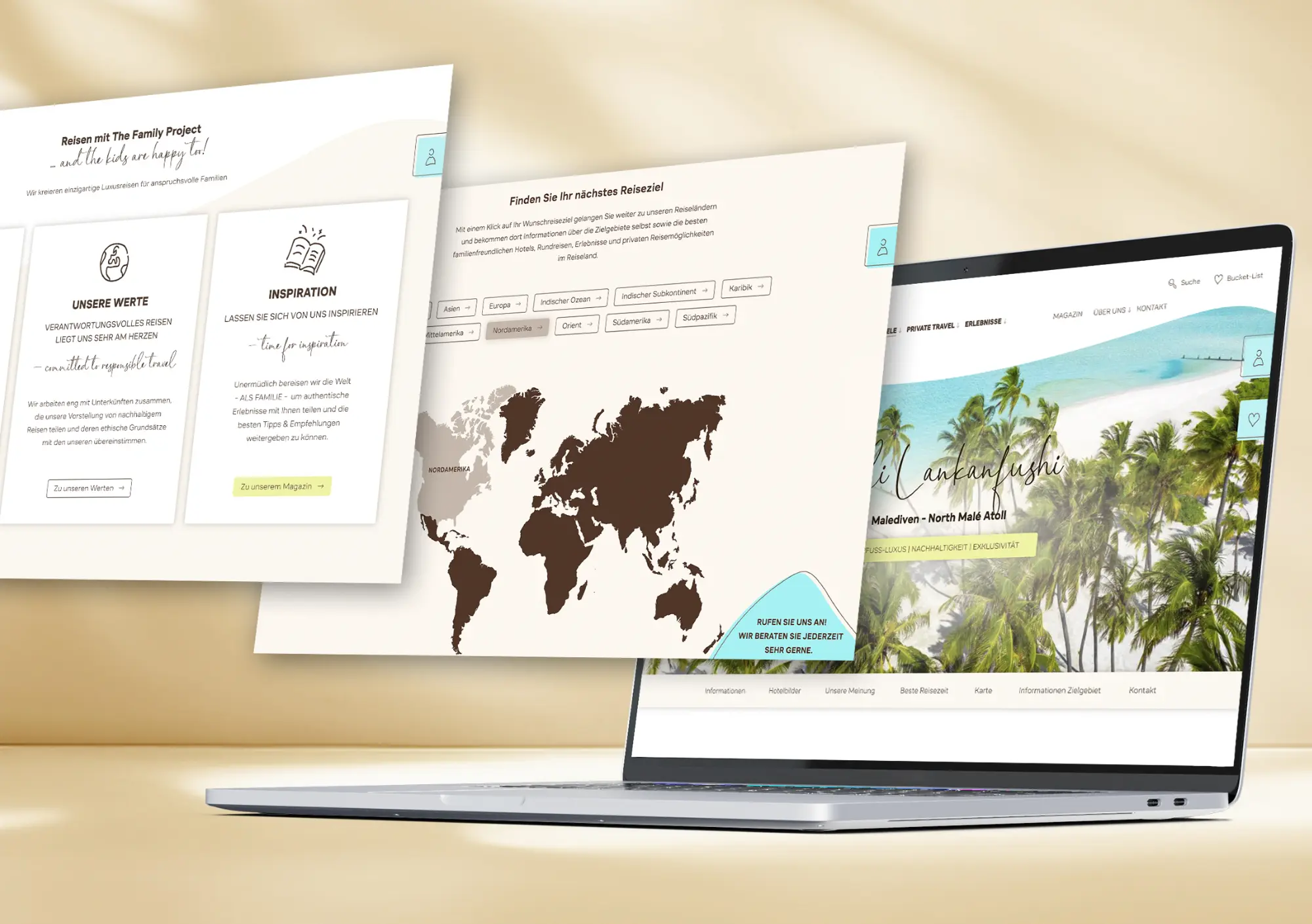 The Family Project website combines exclusive aesthetics with personal proximity. Hand-drawn icons, organic shapes and stunning imagery create a unique user experience. Users can explore travel destinations via interactive maps or find them quickly using the clear navigation. The technical basis simplifies maintenance, and the integrated CRM is the foundation for making sales processes more effective and expanding them. This turns a website into a real sales booster.