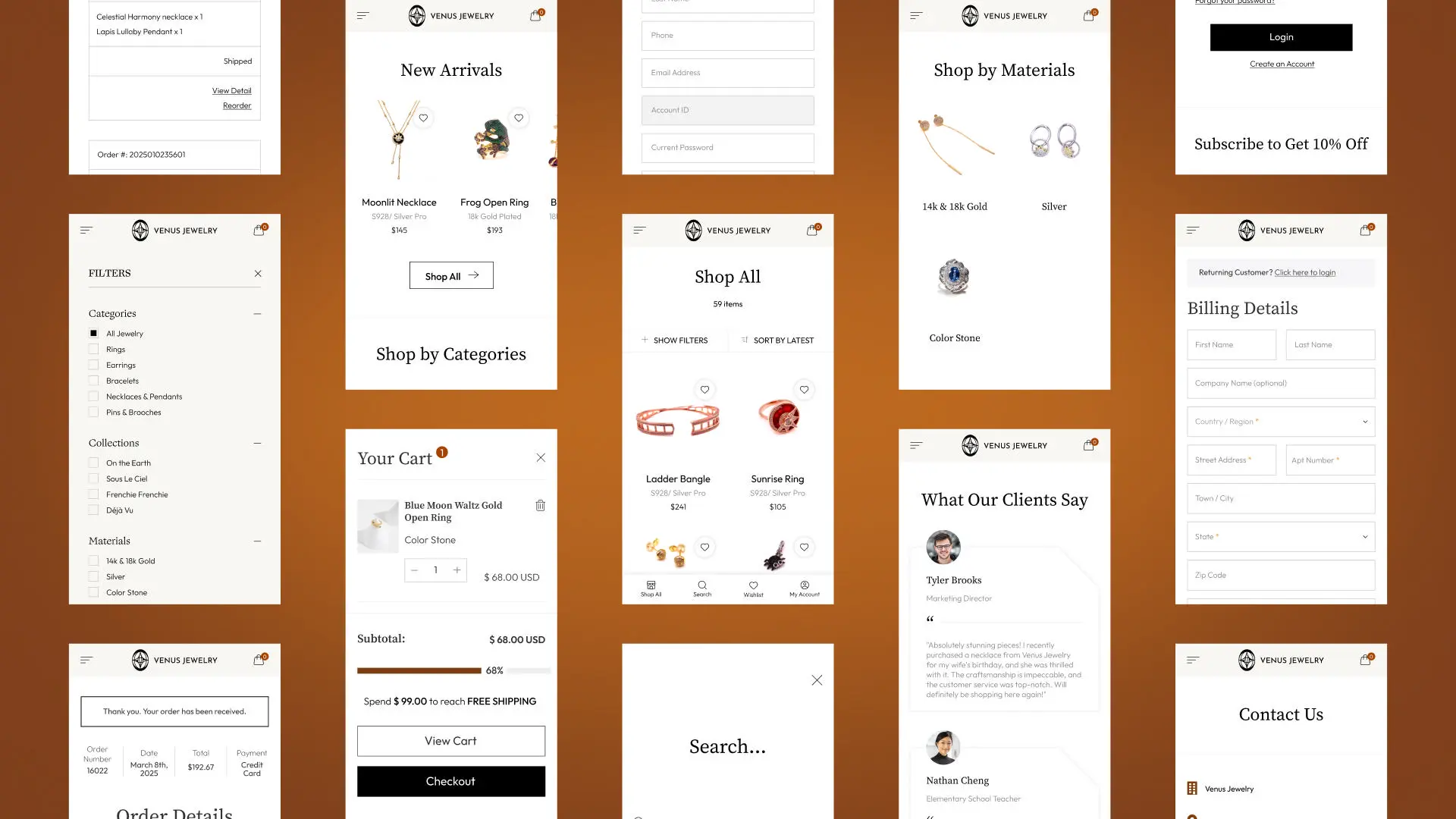 Venus Jewelry LLC, a boutique fine jewellry brand in Irvine, California, specializes in 14K/18K gold, sterling silver, and gemstone pieces including necklaces, earrings, rings, and bracelets. In 2024, it launched a CMS-based e-commerce website built on WordPress, serving B2C customers and B2B clients via wholesale registration and access. The platform combines intuitive interaction design, clear category hierarchy, high-resolution imagery, and secure checkout. With transparent pricing from $66 to $241 and integrated analytics driving optimization, the site translates timeless craftsmanship into a refined digital retail experience.