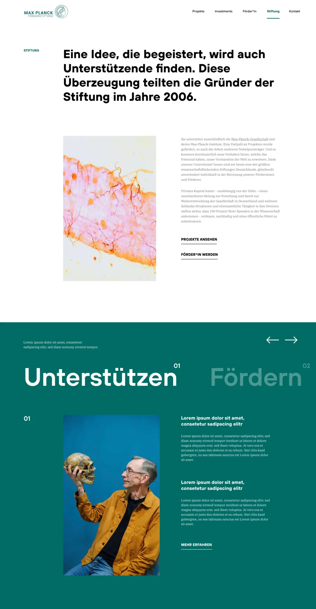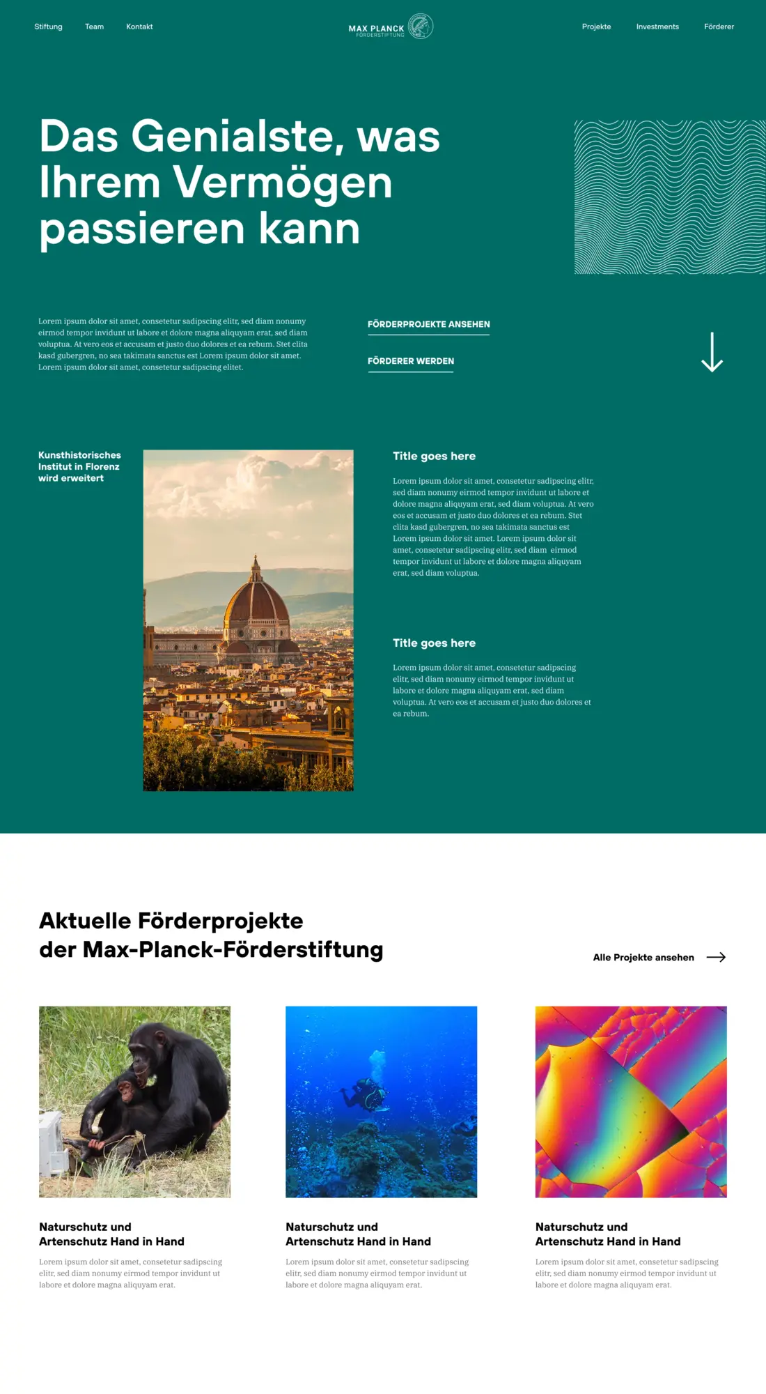 We completely reimagined, designed, and implemented the new website for the Max Planck Foundation. A unique design language was developed—rooted in the institution’s identity but reinterpreted with a modern, intuitive, and digital approach. Every detail, from phyllological design elements to modular components, ensures a seamless and contemporary user experience. The web design also became the basis for updated marketing materials. With this project, we proved our expertise once again, ranking among the Top 10 of the German Web Awards for the third year in a row.