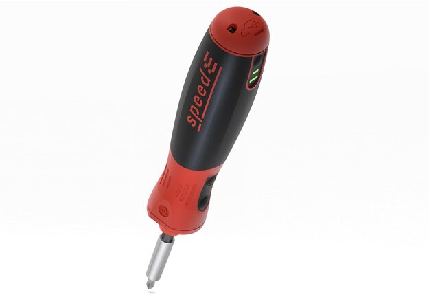 The »speedE® PocketDrive« electric screwdriver blends the simplicity of a traditional screwdriver with cutting-edge technology, offering intuitive handling. With adjustable torque settings and an innovative LED ring, it enables precise work even in challenging environments. Its functional design ensures safety and comfort.