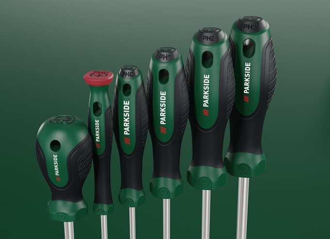 The screwdriver, designed in our unique corporate identity (CI), combines functionality with design. The oval ergonomic shape at the widest part of the handle, together with the TPE structure, is designed for optimal power transmission. For quick turning of easy-to-move screws, the handle is round at the narrowest point and features a surrounding TPE coating. The asymmetrical cap on the handle gives the screwdriver a directional orientation, making it easier to locate the screw type designation.
