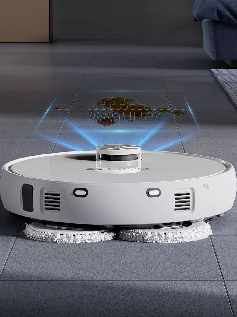 The shape of these vacuum mop robots is similar to traditional vacuum cleaners: round and flat. However, Zaco's ‘X1000’ is taller and bulkier - built for commercial use in a variety of spaces, offering higher performance over a larger area. It has a touch display at the top and stylised eyes at the front to indicate its status. Navigation is provided by lidar and laser sensors, while the front camera detects obstacles. Also a winner of the German Innovation Award 2025.