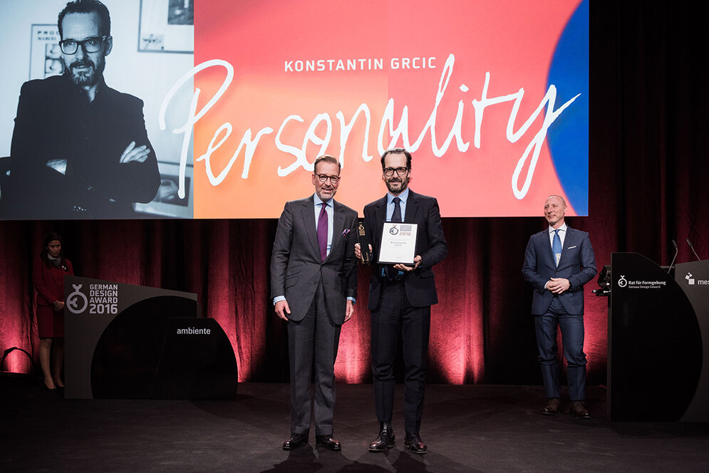 Konstantin Grcic represents the undogmatic contemporary German design throughout the world in an unparalleled manner and the jury of the German Design Award 2016 has honoured this achievement by selecting the Munich-based designer for the Personality distinction. Konstantin Grcic is considered as one of the most important designers of our times. Born in 1965, first he completed a carpentry apprenticeship at the John Makepeace School in Dorset, England, and then finished a degree in design at the renowned Royal College of Art in London. 1991 he founded his atelier Konstantin Grcic Industrial Design (KGID) in Munich. His projects have received international awards and have been displayed in notable design collections throughout the world and include acclaimed projects such as the “Mayday” lamp for Flos or the chair “Chair One” for Magis. Grcic’s unconventional design language is characterised by a great interest for innovative materials and technology in furniture construction and has influenced an entire generation of young designers in Germany.