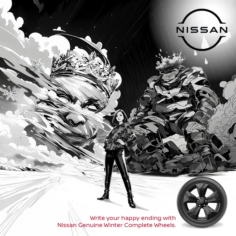 Werbung für Winterräder scheint festgefahren: Der Wettbewerb kommuniziert fast identisch. Unser Sprungbrett: Wir erwecken die neue Brand Strategy von Nissan, „Defy Ordinary“, zum Leben und inszenieren „ordinäre“ Produkte wie Winterkompletträder „Aus Überzeugung anders“: Mit der Kampagne „Write your Happy End“ erschaffen wir mit KI eine Manga-Welt, in der Heldin Mia dank Kompletträdern die Schurken des Winters besiegt. Flexibles Storytelling und ein markantes Design-Framework differenzieren uns klar vom Wettbewerb und wirken gezielt bei B2B und B2C: Mehr Downloads von Vorlagen, doppelter Website-Traffic und dreifaches Instagram-Engagement.