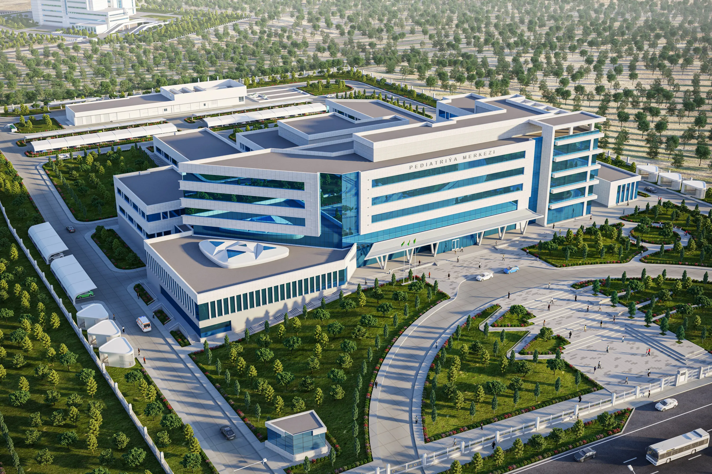 Das neue Kinderkrankenhaus im Internationalen Gesundheitszentrum Aschgabat verkörpert heilende Architektur, die Stress reduziert und Würde fördert, indem es Kinder mit Natur, Spiel und intuitiven Räumen verbindet. Auf 34.900 m² bietet es altersgerechte Spielzonen, Beratungs- und Diagnostikeinheiten, Bildgebung, Physiotherapie, Notaufnahme, eine Intensivstation mit 16 Betten, moderne Labore und 5 OP-Säle. Es wurde als menschenzentrierte Umgebung gestaltet und erfüllt funktionale sowie operative Anforderungen als führendes pädiatrisches Zentrum Turkmenistans.