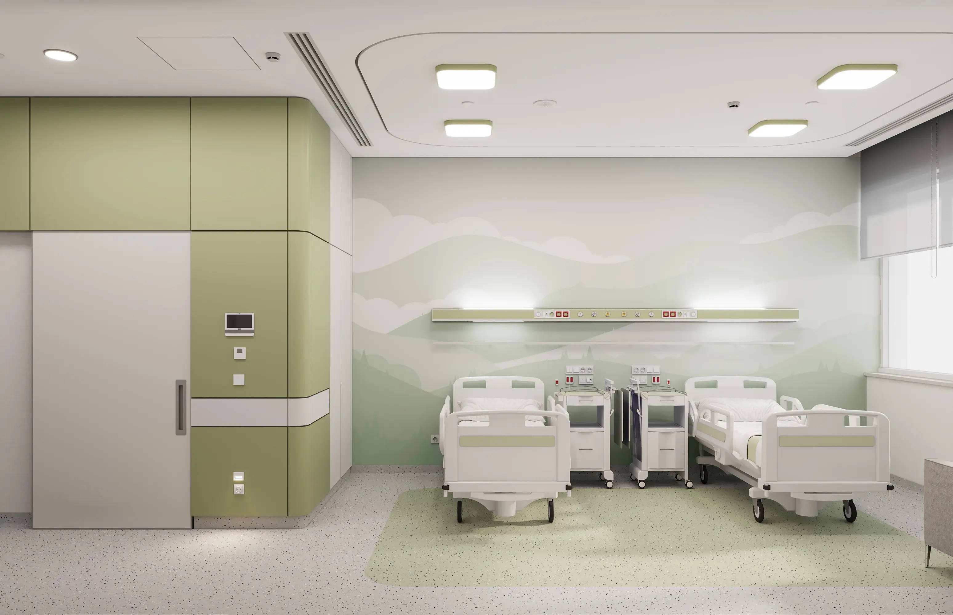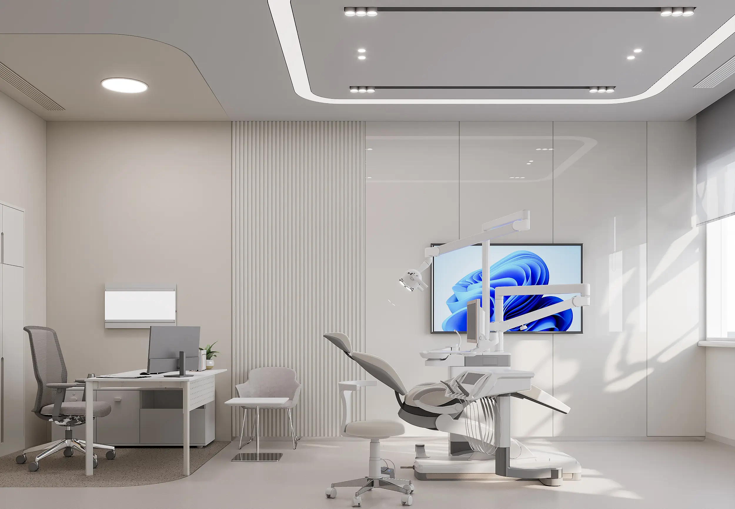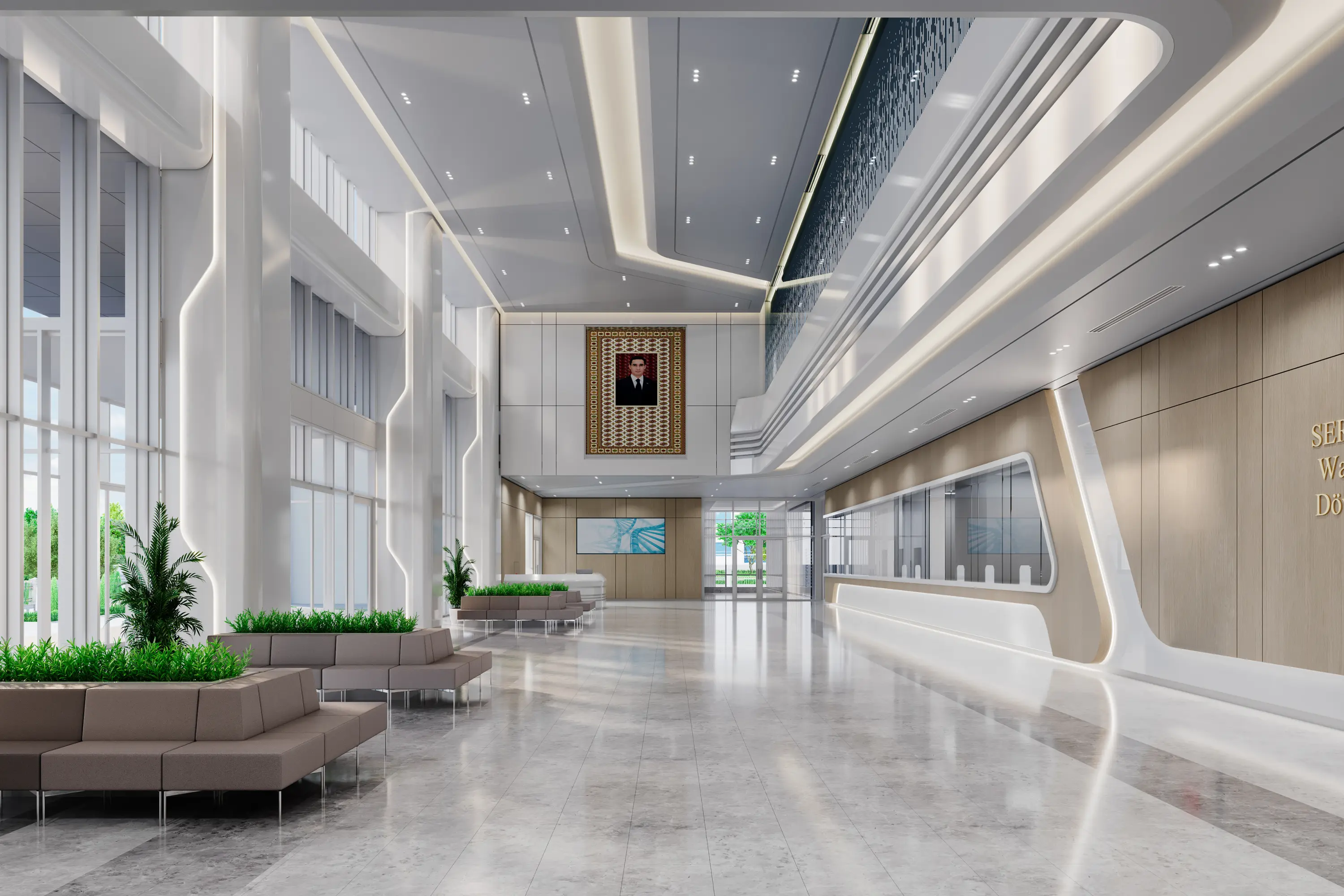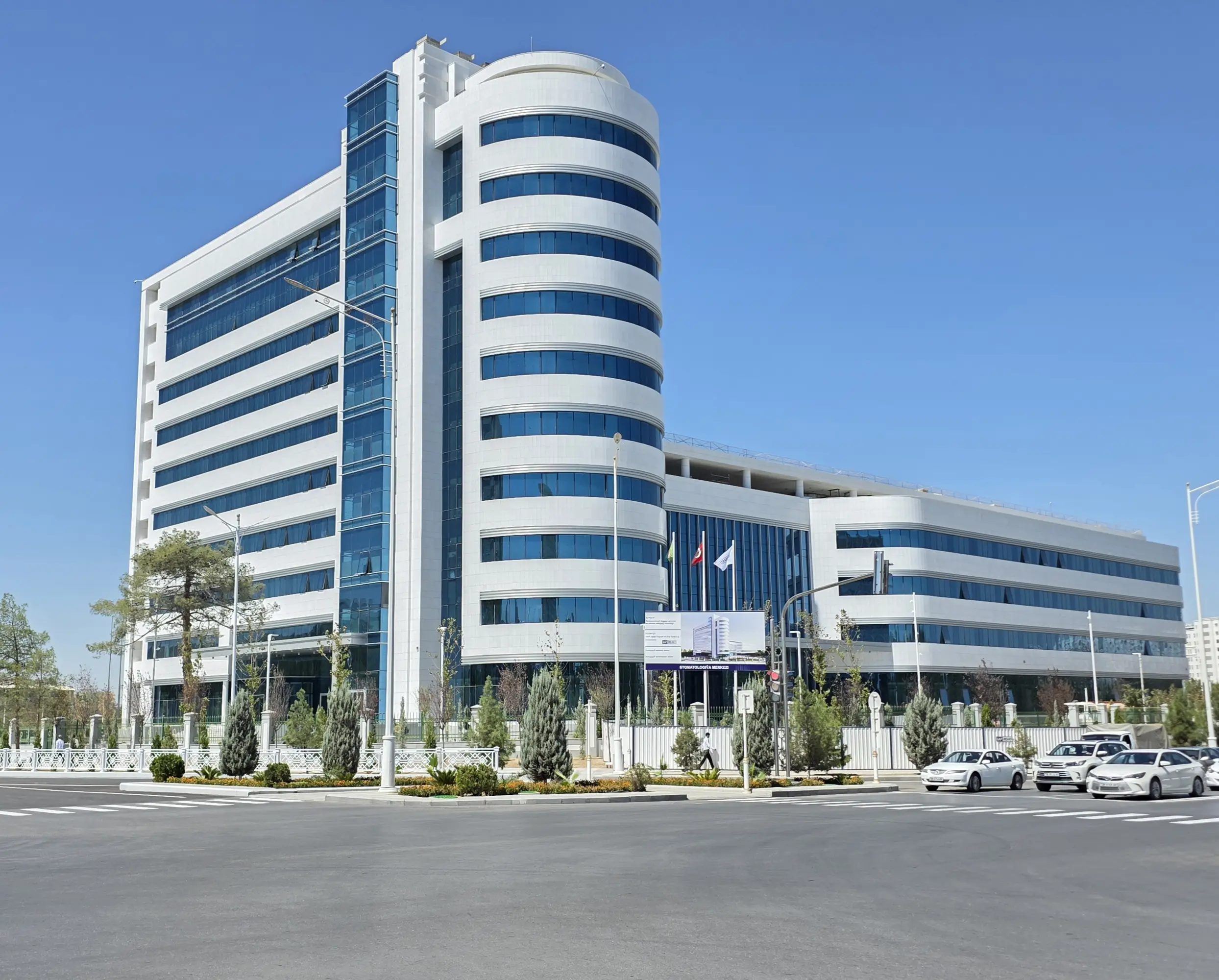 Das Zentrum für Stomatologie bietet sowohl zahnmedizinische Versorgung als auch kieferchirurgische Eingriffe an und ist das einzige Krankenhaus im Land mit Fachkompetenz in beiden Bereichen. Die Architektur wird durch die Gegenüberstellung der zwei Gebäudeteile und die aufwendige Innenausstattung betont. Ein durchdachter Grundriss erleichtert den Ablauf, während ruhige Farben und modernes Design die Heilung fördern. Mit 80 Betten bietet das Zentrum große Vorteile für die Gemeinschaft dank Hightech-OP-Sälen, umfangreicher Produktion in Zahnlaboren und modernster Technologien im Dentalbereich.