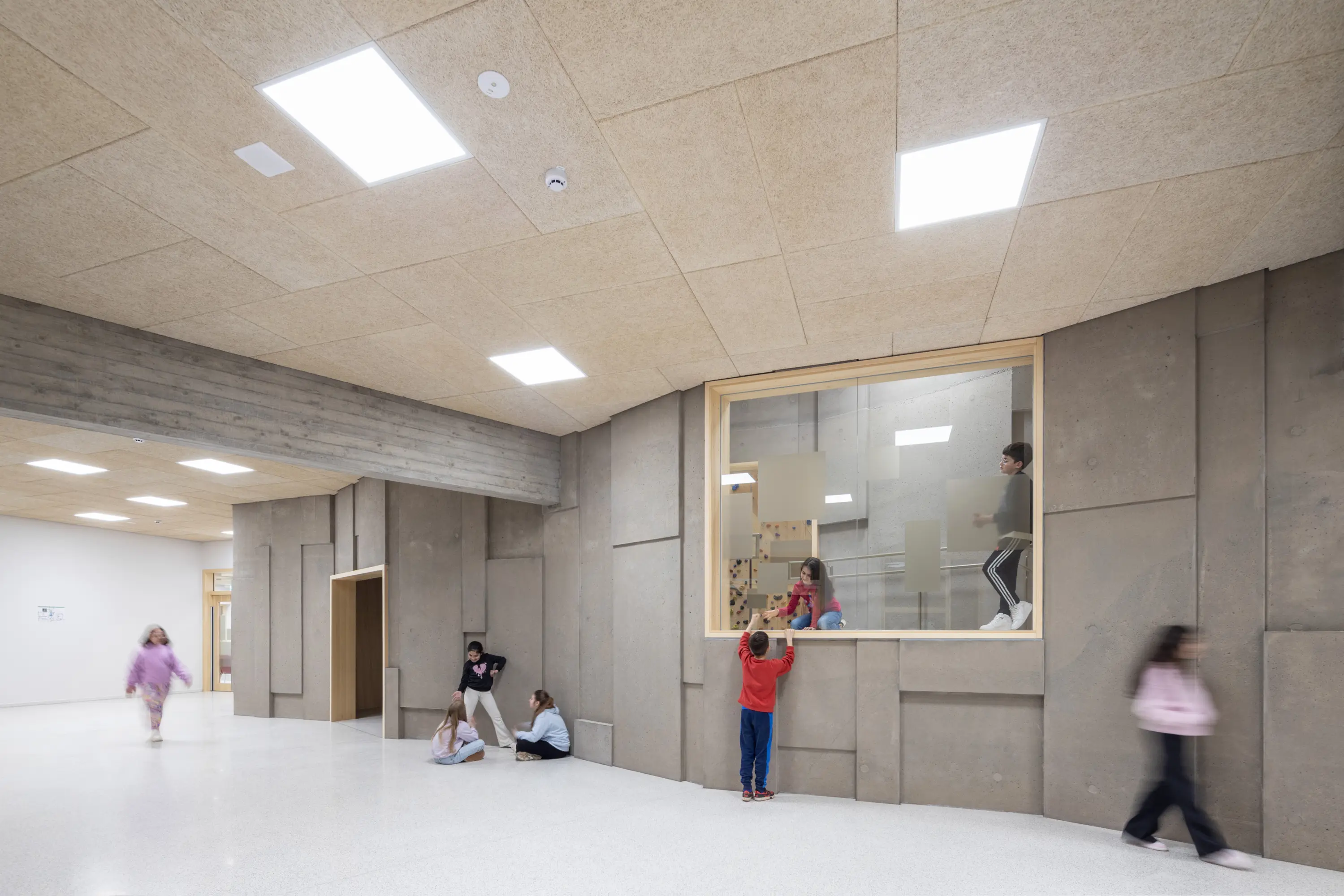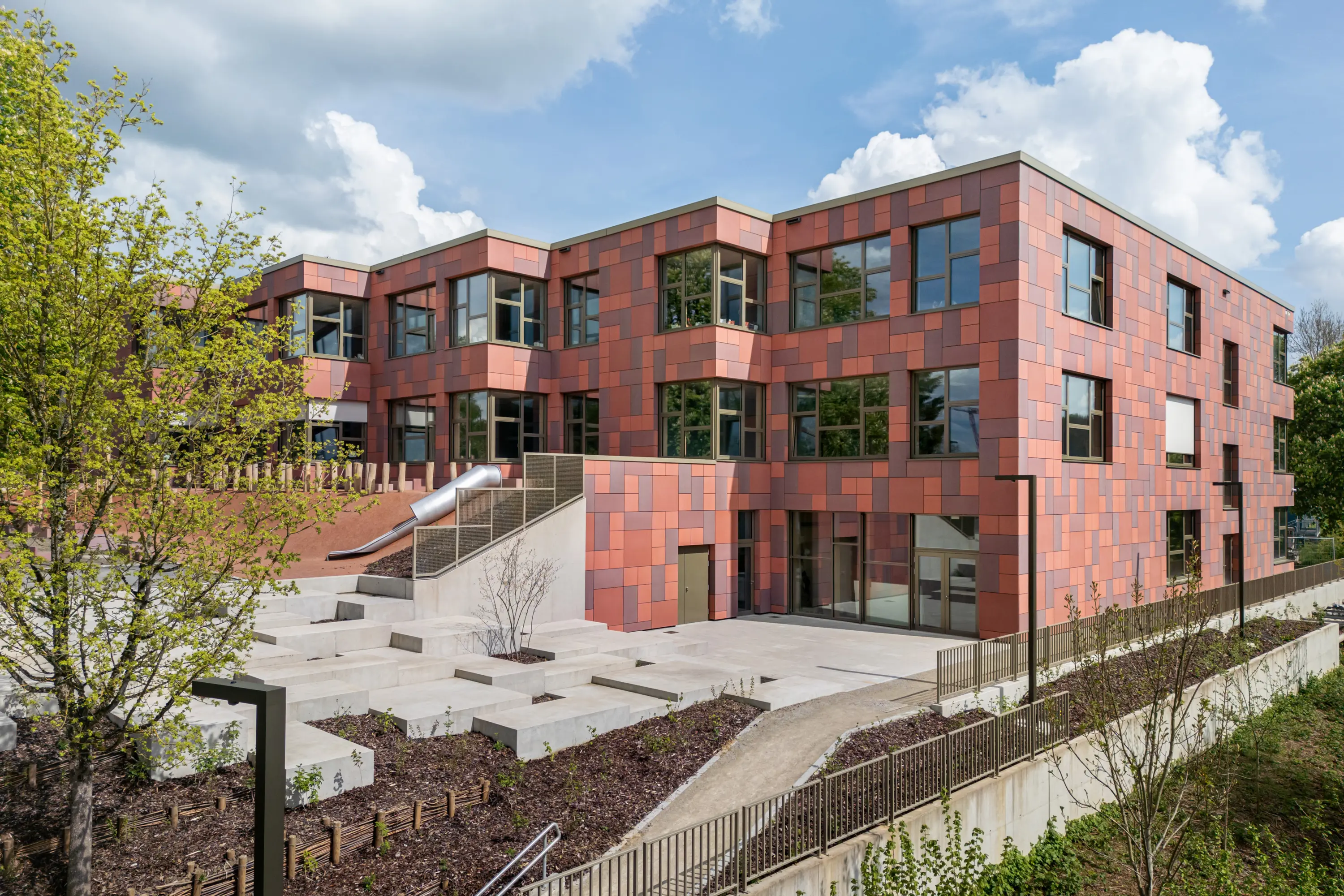 Die Sanierung und Erweiterung der Um-Bock-Schule in Differdange bewahrt mehr als ein Gebäude – sie repräsentiert Identität, Erinnerung und Gemeinschaft. Bei der in den 1950er-Jahren errichteten Schule wurden bewusst Betonstruktur und Ziegelwände beibehalten, um Authentizität und gealterte Patina zu erhalten. Anstatt beschädigte Bereiche zu ersetzen, verfolgte das Projekt einen unkonventionellen, gemeinschaftlichen Ansatz: Kinder entwarfen mit lokalen Künstlern eigene Ziegel, die ins Mauerwerk integriert wurden.