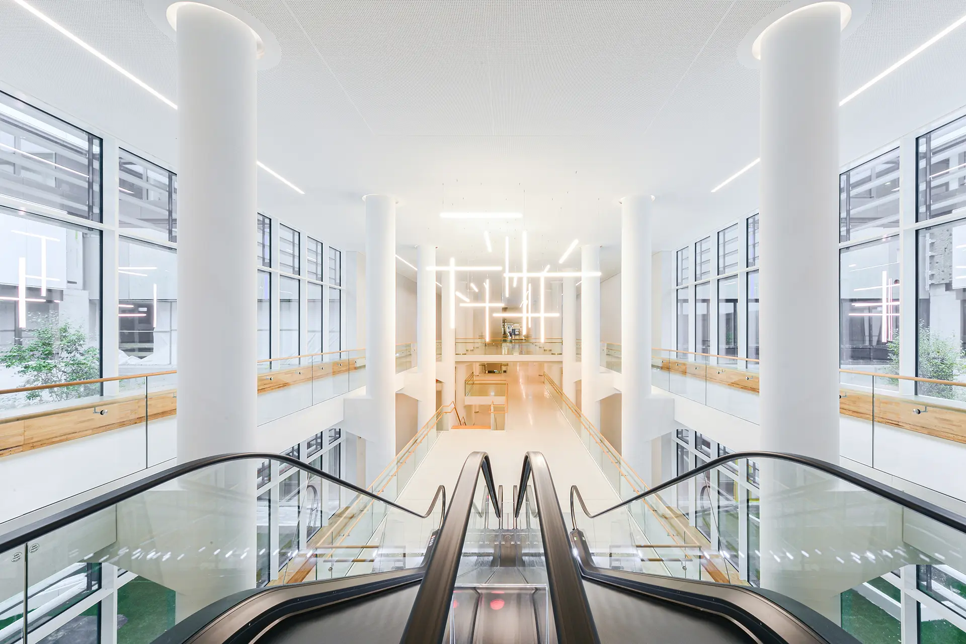 Wahrzeichen des Uniklinikums aus den 1970er Jahren sind seine Bettentürme. Sie wurden jeweils um ein Geschoss aufgestockt - auf dem Ost-Turm gibt es heute ein Café-Bistro mit phänomenalen Rundumblicken. Der Sockelbau des Zentralklinikums wurde unter Fortführung seiner zentralen Magistrale erweitert und um ein Geschoss ergänzt. In der aufgestockten Ebene 7 entstand eine Pflegestation mit hotelähnlicher Atmosphäre und dem besonderen Komfort einer an die Zimmer angrenzenden grünen Terrasse.