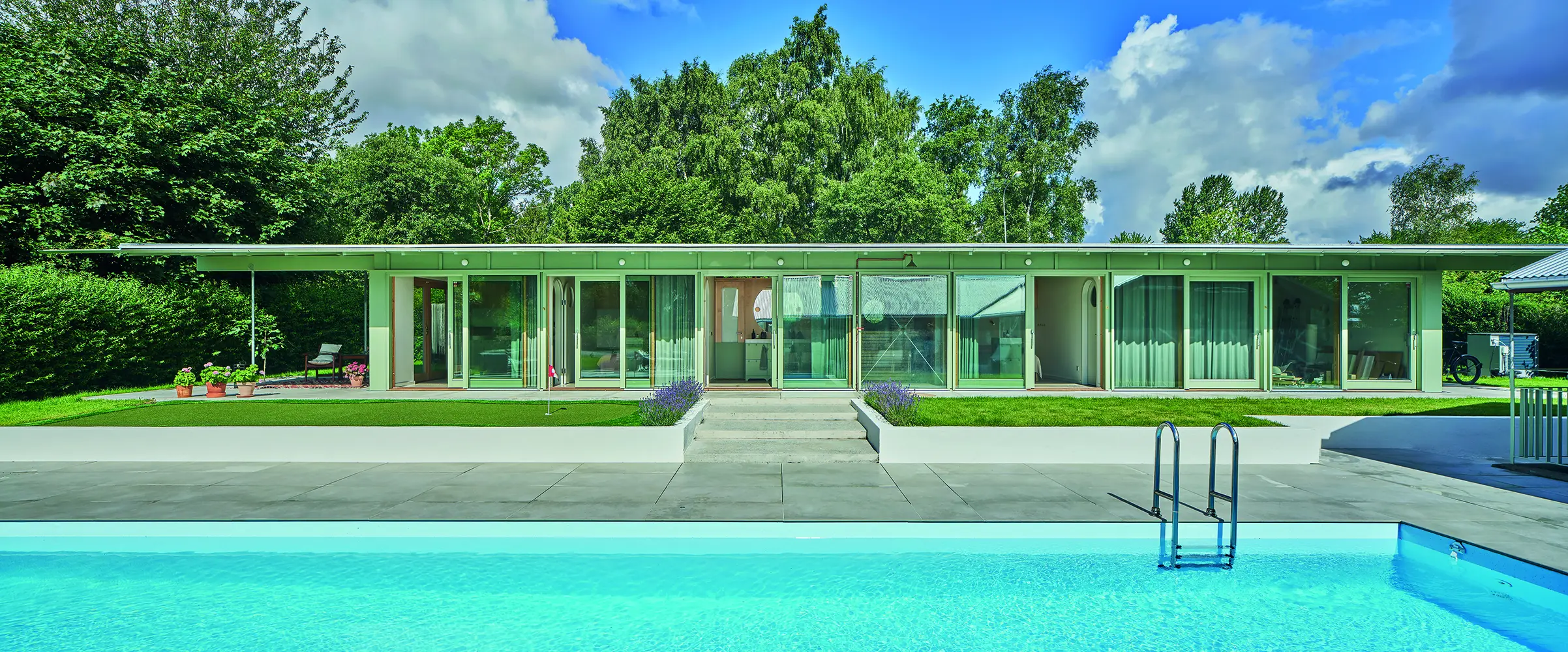 Björn ist ein alter Freund. Als er mehr Platz brauchte, halfen wir ihm gerne. Ein einfaches Prinzip mit Durchgangszimmer unter einem vorspringenden Dach. Alle Räume sind gleich groß und haben wandhohe Glasschiebetüren, sogar der Abstellraum. Im Laufe der Zeit wurden einige Dinge hinzugefügt. Ein rundes Fenster in der Rückwand. Ein Waschtisch mit Minibar in jedem Schlafzimmer. Abgerundete Türen, die den Blick durch das Haus poetischer machen. Eine Nische in den Wänden, in der die Türgriffe im geöffneten Zustand Platz finden. Runde Glasbausteine in der Seitenwand. Kleinigkeiten, aber jedes Detail erhielt die gleiche Aufmerksamkeit.