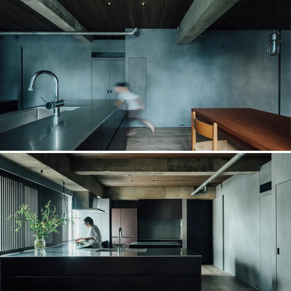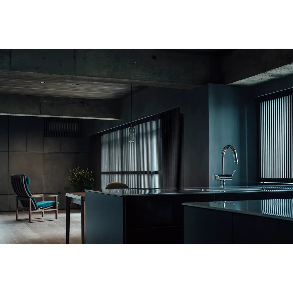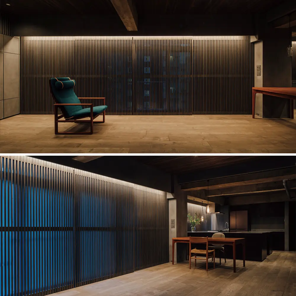 Renovierung einer Wohnung im Obergeschoss einer Eigentumswohnanlage unter dem Motto „Japanische synkretistische Schönheit”. Ein Raum, der von verschiedenen Handwerkern gestaltet wurde und Materialien, Möbel und strukturelle Elemente aus verschiedenen Epochen synkretistisch miteinander verbindet. Die Küche und die Raumaufteilung wurden so geplant, dass sie einem Lebensstil gerecht werden, bei dem zu jeder Jahreszeit Gäste zum Essen eingeladen werden, wodurch das Außergewöhnliche in einen ruhigen Alltag integriert wird. Vertikale Gitterkonstruktionen, die eine neue Interpretation der Einbindung der Natur in die städtische Umgebung darstellen.