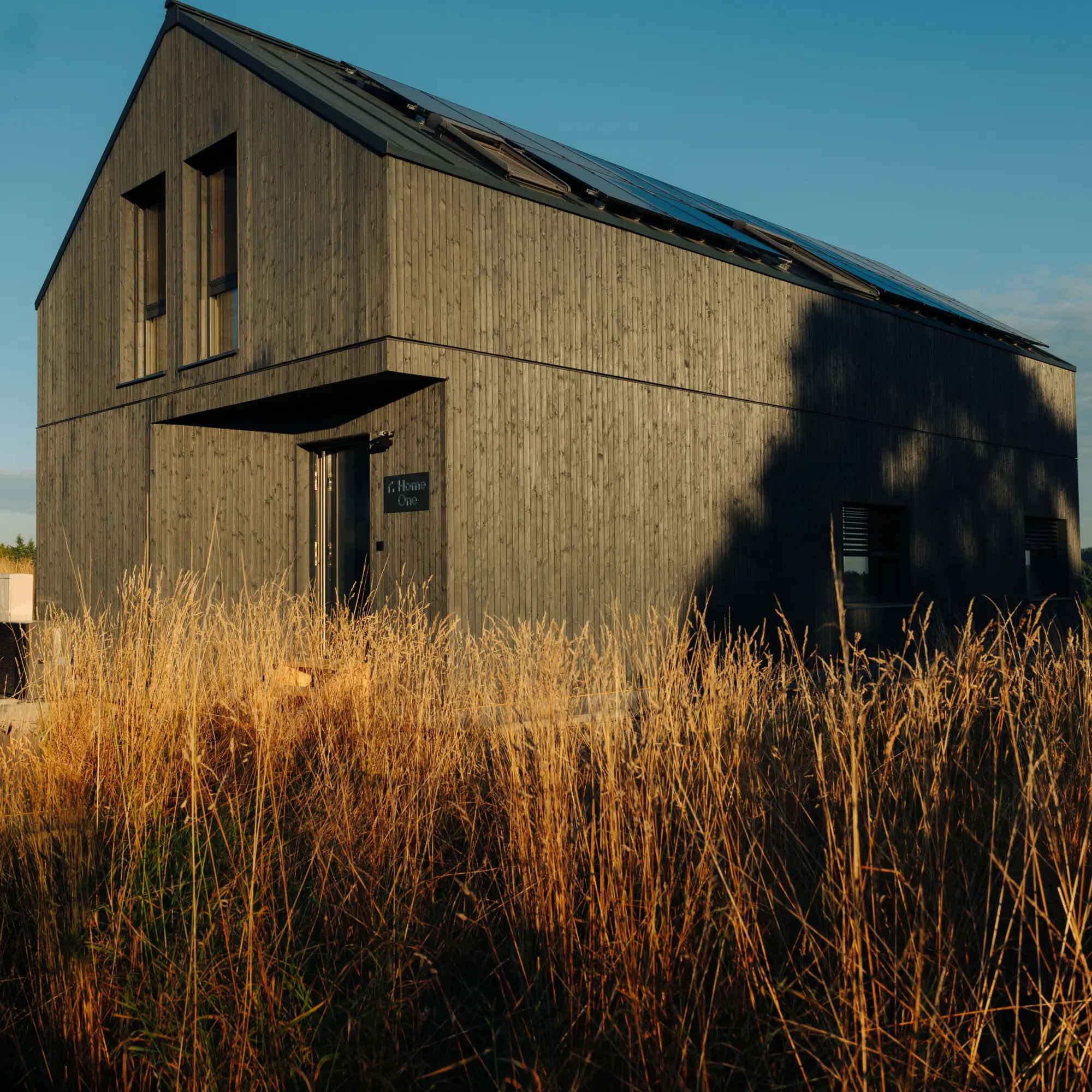 House One interpretiert den Traum vom Eigenheim neu. Das kompakte, seriell gefertigte Holzhaus mit 143 m² vereint Ästhetik, Nachhaltigkeit und Zukunftsfähigkeit. Nutzungsneutrale, gleich große Räume und vorinstallierte Anschlüsse ermöglichen eine flexible Nutzung über Lebensphasen hinweg – etwa durch Teilvermietung, wenn Kinder ausziehen. Die kompakte Form ist nicht nur energieeffizient, sie folgt der Funktion, senkt Produktionskosten und spart durch die zirkuläre Holzbauweise bis zu 90 % graue Emissionen. House One schafft zukunftsfähigen Wohnraum im Einklang mit den UN-Nachhaltigkeitszielen – ökologisch, ökonomisch, sozial und ästhetisch.