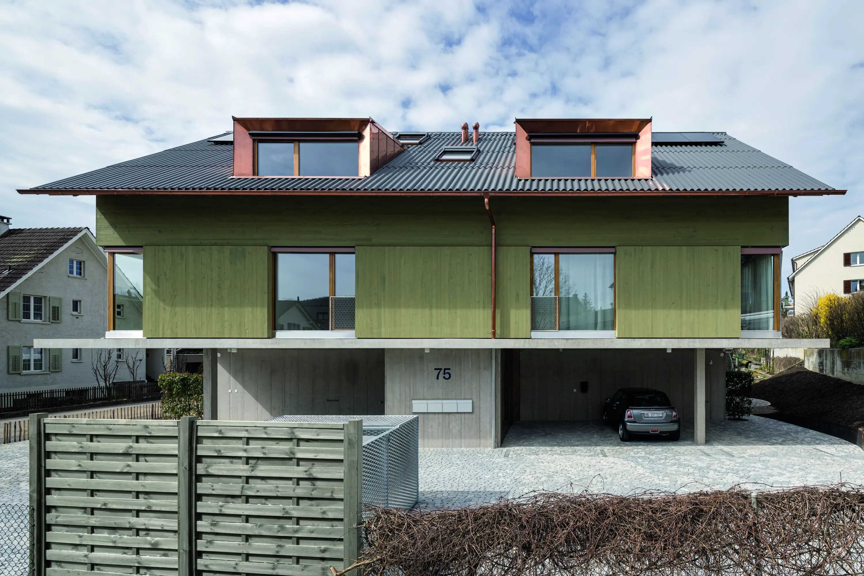 Inmitten eines Wohnquartiers in Sissach steht das neue Mehrfamilienhaus mit vier Wohnungen. Das Mehrfamilienhaus besteht aus drei Wohngeschossen sowie einem Galerie- und einem Untergeschoss. Alle Wohnungen erstrecken sich über mehrere Geschosse was zu spannenden Raumerlebnissen führt. Das Gebäude wird als Massivbau mit einer hinterlüfteten Holzfassade erstellt. Das ausgeprägte Sockelgeschoss in Sichtbeton bildet eine bewusste Zäsur zwischen der Gartenanlage und den darüberliegenden Geschossen.