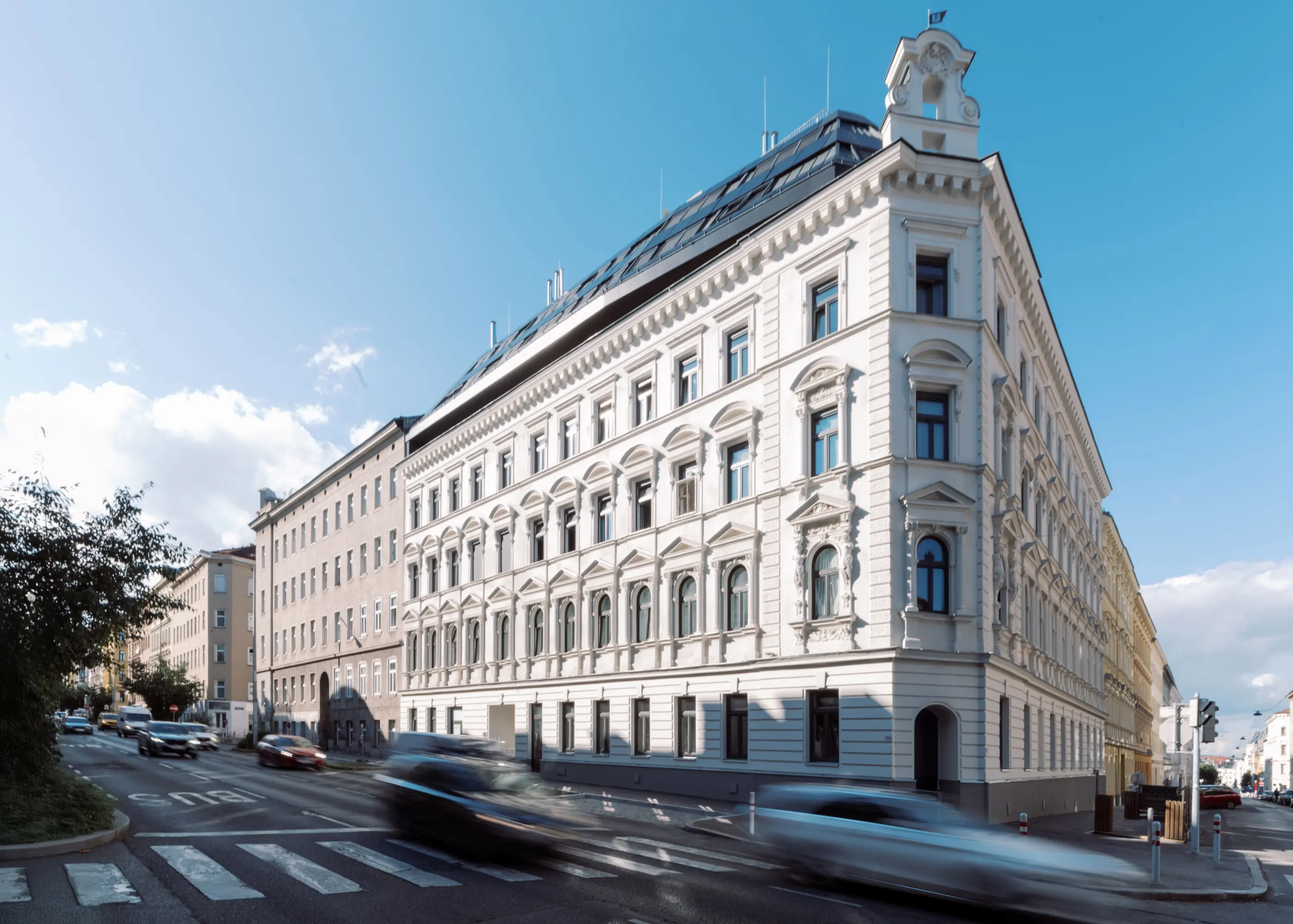 „Pracht-Werk“ transformiert ein sanierungsbedürftiges Gründerzeithaus durch präzise Nachverdichtung und energetische Sanierung in ein Vorzeigeprojekt moderner Stadtentwicklung. Drei neue Dachgeschosse mit integrierter PV-Anlage ergänzen die historische Substanz sensibel. Rekonstruierte Fassaden, ein begrünter Innenhof und 68 % weniger Heizbedarf vereinen Baukultur, Nachhaltigkeit und urbane Qualität.