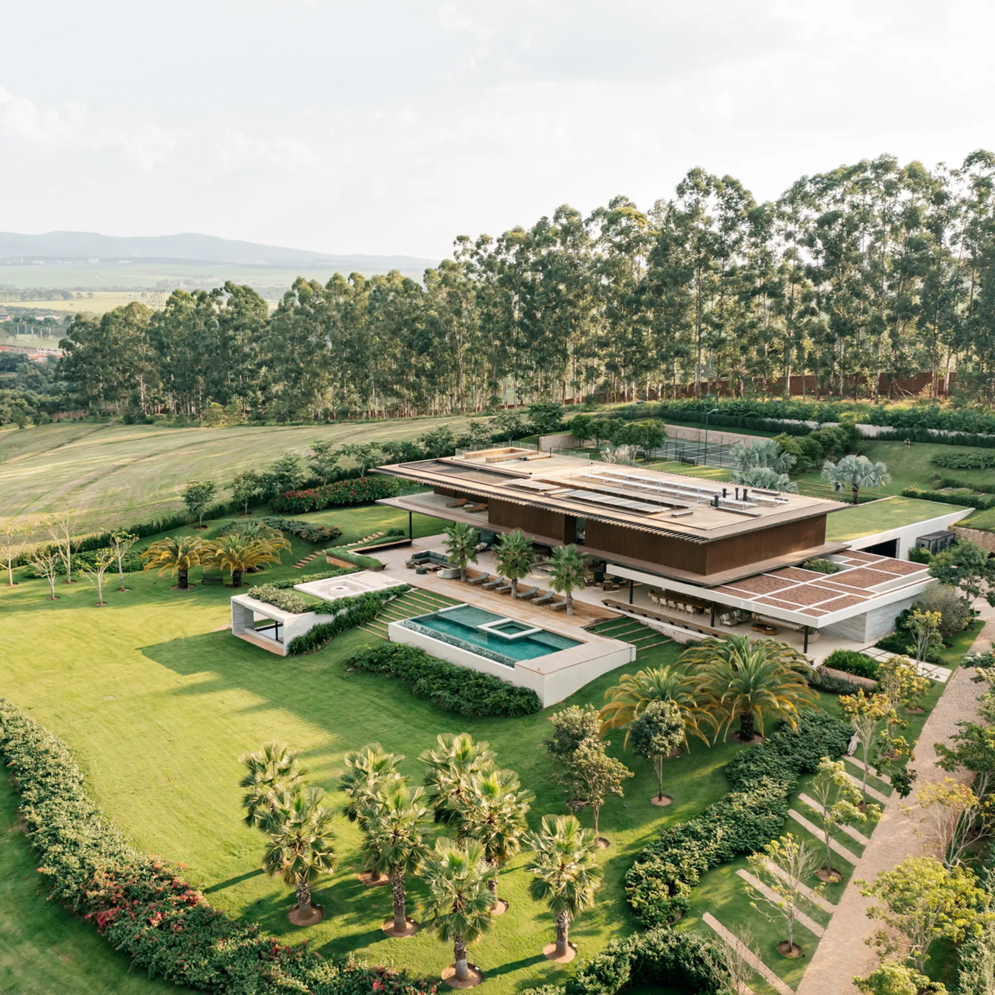 Im São-Paulo-Hinterland gelegen, ist die Valencia Residence ein Sommerrefugium, das Familien in Harmonie mit der Natur vereint. Das Projekt integriert Baukörper in die Landschaft und verbindet Komfort mit markanter Architektur aus horizontalen Linien und offenen Gemeinschaftsbereichen. Kontraste entstehen zwischen intimen Deckenhöhen und großzügigen Zonen für Sport und Freizeit. Private Räume, darunter ein abgeschiedenes Familienzimmer, bewahren Ausblicke und Naturbezug. Mit eleganten Lösungen verschmilzt die Valencia Residence Innen- und Außenleben, respektiert das Gelände und stärkt die Umgebung.