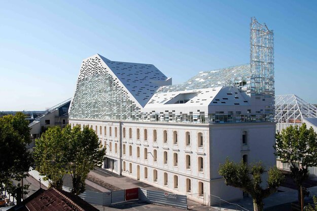 Bau des Essca-Campus in der ehemaligen Bastide-Niel-Kaserne im Herzen eines sich entwickelnden Stadtgebiets: Management-Schule für 700 Studenten mit Klassenzimmern, Amphitheater, Foyer, Verwaltungsbüros, Empfangshalle und Außenterrassen. Das Projekt berücksichtigt das bestehende, eher schmale Gebäude und das durch den Stadtplan des Entwicklungsgebiets vorgegebene, geknickte Höhenvolumen. Das Gebäude ist erdbebensicher, HQE Sehr Gut zertifiziert und hat den Standard BREEAM Gut. Die Stromerzeugung erfolgt durch weiße Photovoltaikmodule, die in die Dächer integriert sind, sodass die Fassaden völlig einheitlich gestaltet werden können.
