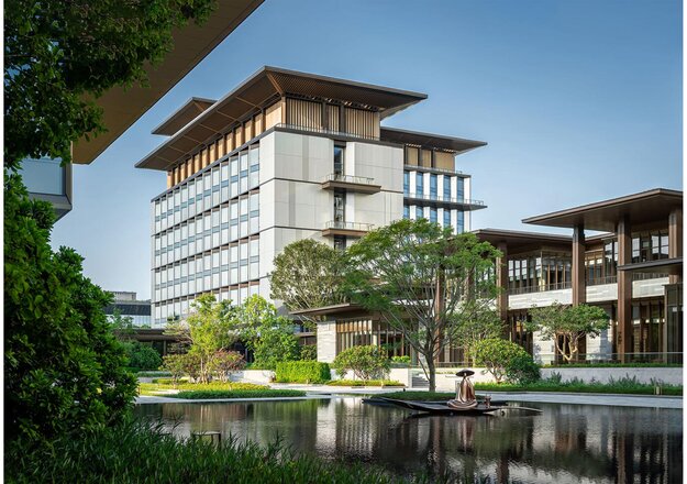 Dieser Hotelkomplex vereint traditionelle Gartenarchitektur mit modernem Design und fördert dadurch die internationale Vernetzung von Guangzhou. Durch die in sich stimmige Verbindung von Kultur und Architektur entsteht ein urbanes Wohnzimmer, das sowohl die Gemeinschaft belebt als auch den kulturellen Austausch unterstützt. Der »Guangzhou Baiyun International Convention Center Hotel Complex« beeindruckt durch seine gelungene Integration von Natur und Stadtleben.