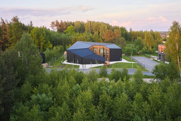 Der private Kindergarten, Teil der 44 ha großen Entwicklung "Uogu slenis", liegt neben einem baltischen Wald mit Birken und Kiefern und bietet eine außergewöhnliche Lernumgebung. Das Design fördert Neugier, Kreativität und Liebe zur Natur. Die dunkle Fassade kontrastiert mit der Umgebung, und hohe Fenster bieten ungehinderte Ausblicke. Ein Innenhof bietet einen sicheren, anregenden Raum. Die 557 m² große Fläche umfasst sieben Klassenzimmer, zwei davon speziell für sehr kleine Kinder, die eine fördernde Umgebung sicherstellen. Das Design betont ein einzigartiges Lernerlebnis und unterstützt die Bildungs- und persönliche Entwicklung der Kinder.