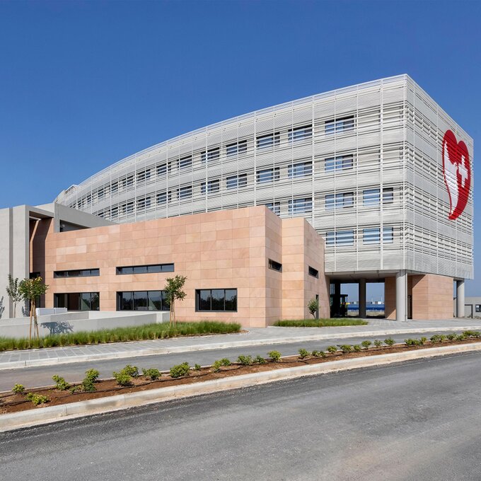 Das neue Onkologiegebäude des Interbalkan Medical Center beeindruckt durch seine besondere Krümmung, die einen harmonischen Grundriss schafft. Die geschmackvoll gestalteten Innenräume bieten eine warme, einladende Atmosphäre, die den Heilungsprozess positiv beeinflusst. Die patientenfreundlichen Behandlungsräume setzen vorbildliche Maßstäbe in der Krankenhausgestaltung.