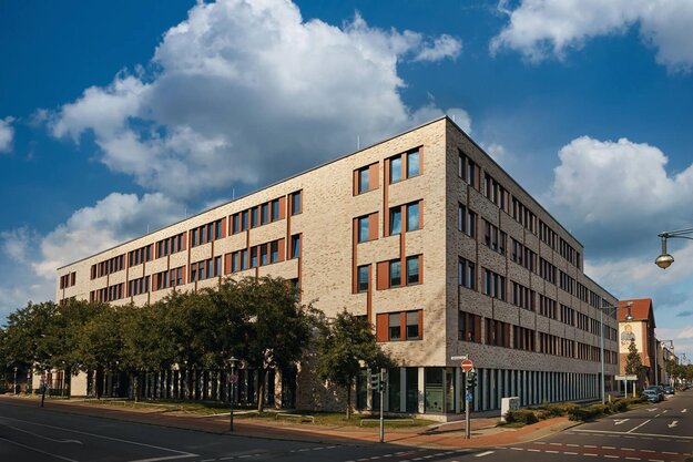 Das Bürogebäude in Krefeld wurde sorgfältig in seine städtebauliche Umgebung integriert und bietet eine zukunftsweisende Verbindung von Design und Nachhaltigkeit. Hervorzuheben sind die abwechslungsreiche Fassade und die grünen Innenhöfe, die sowohl Biodiversität als auch E-Mobilität fördern. Das »OPUS - Jobcenter Krefeld« setzt Maßstäbe für klimafreundliche Architektur.