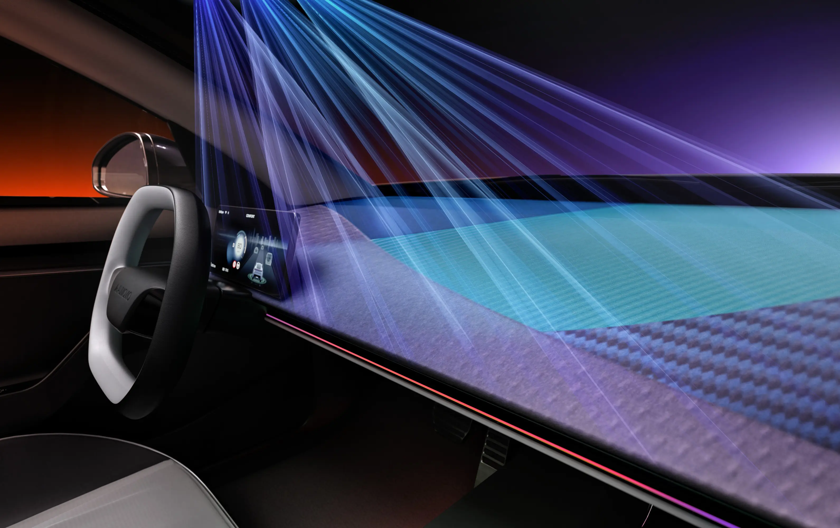 Surface Projection verwandelt Fahrzeug-Innenräume mithilfe kompakter RGB-Projektoren in dynamische Lichtlandschaften. Bis zu drei synchronisierte Einheiten erzeugen ein nahtloses pillar-to-pillar Erlebnis mit animierten Grafiken. Die diskrete Dachintegration ermöglicht neue Formen der Personalisierung, Markeninszenierung und funktionalen Projektion – etwa für ADAS-Hinweise oder Ambient-Stimmungen. Licht wird zum flexiblen Designmedium und schafft emotionale, interaktive Fahrerlebnisse.