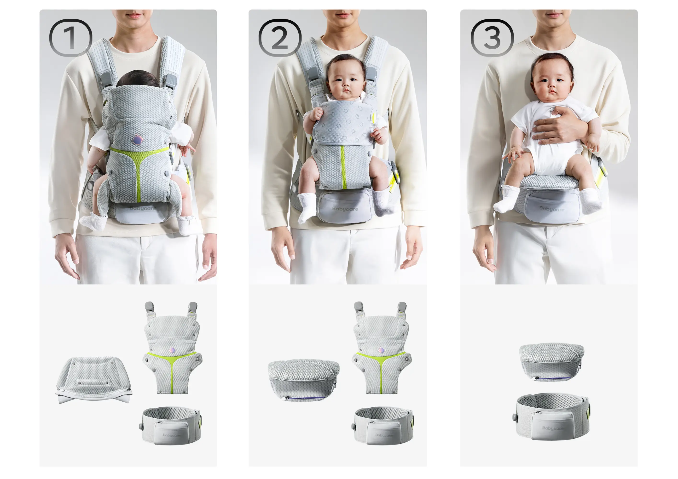 Da sich das Konzept wissenschaftlicher und sorgfältiger Erziehung immer weiter vertieft, verstehen Benutzer den Unterschied zwischen Tragetüchern und Hüfthockern immer besser, was die Kaufangst lindert. Die „3-in-1-Babytrage“ soll dieses Problem lösen. Durch das clevere modulare Design des Vorderteils deckt sie alle Phasen ab und trägt wissenschaftlich fundierten Angaben zu den sensiblen Erziehungsbedürfnissen verschiedener Altersgruppen bei. Sitzbreite, Sitzhöhe und Kopfteil sind mehrstufig verstellbar. Das separate Babyfach erleichtert das An- und Ausziehen durch eine Person. Sie ist eine wertvolle Hilfe für Eltern bei der Babypflege.