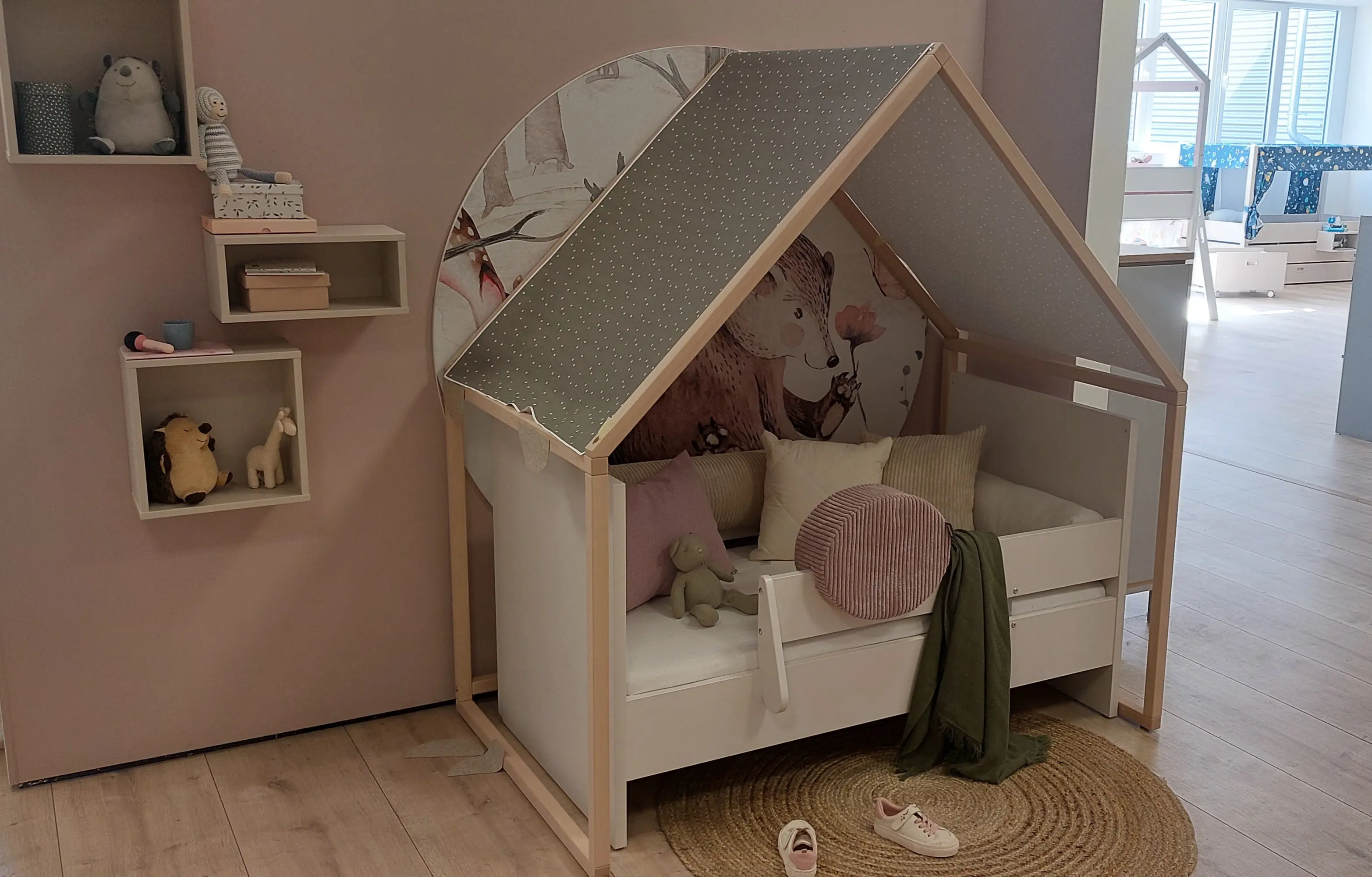 Das Little PAIDI House ist für Kinder das erste kleines Reich zum Träumen und Gestalten. Die abgegrenzte Fläche fördert die Autonomie und schafft den Raum, selbstständig zu spielen. Flexibel im Kinderzimmer oder im Wohnzimmer aufgestellt gibt das Häuschen viele Gestaltungsmöglichkeiten, die die Kreativität fördern: als Kaufladen, Pferdestall, Leseecke... Kombiniert mit Bodenbetten der Little-Familie entstehen Hausbetten mit Raum für schöne Einschlafrituale. Gefertigt aus massiver, unbehandelter Buche sorgt das Haus für ein gutes Raumklima und ist zugleich stabil und kindersicher. Eine textile Dachbespannung aus Baumwoll-Canvas ist verfügbar.