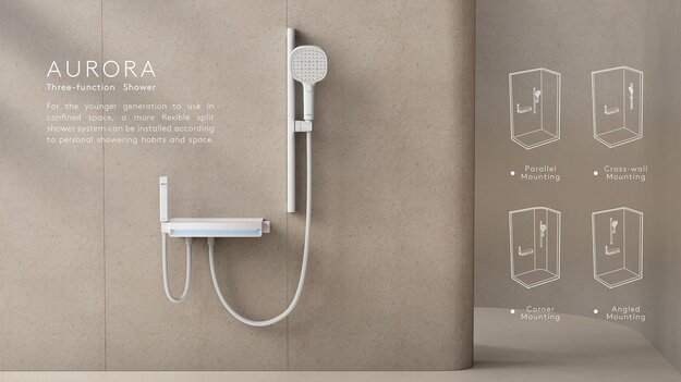 Das minimalistisch gestaltete Duschsystem eignet sich ideal für den Einbau überall dort, wo Platz knapp ist. Die flexible Installation und die ergonomischen Bedienelemente tragen zur Benutzerfreundlichkeit bei. Der Verzicht auf externe Stromquellen für Lichteffekte dank des hydroelektrischen Generators unterstreicht die umweltfreundliche Ausrichtung des »Aurora Intelligent Shower System«.