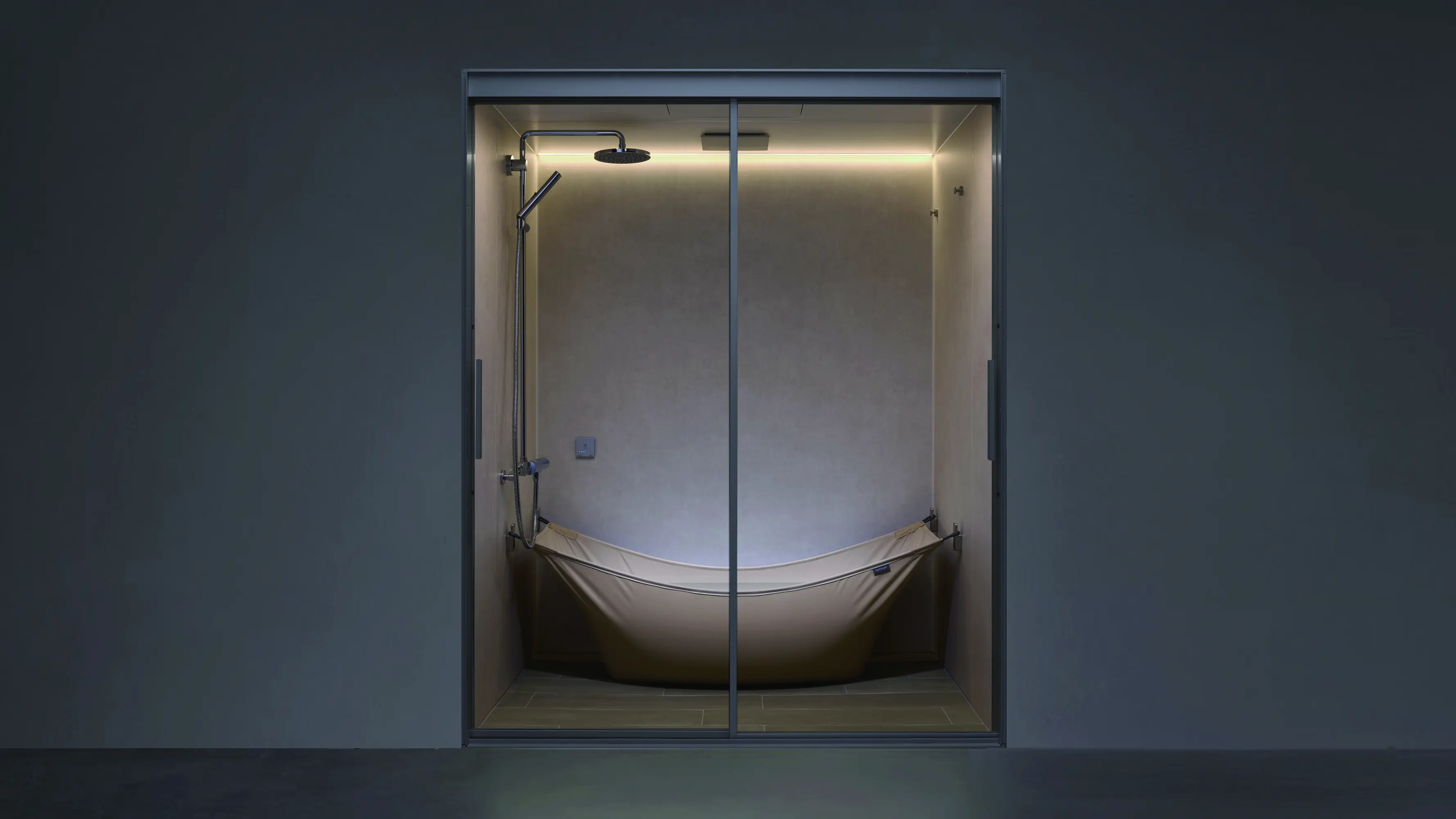 Bathtope ist ein kompaktes Bad, das mit einer Stoffbadewanne, die bei Bedarf herausgenommen werden kann, einen flexiblen Badestil bietet. Der Brauch, jeden Tag ein Bad zu nehmen, wird in Japan sehr geschätzt und ist Teil der japanischen Kultur. Bei der Warmwasserspeicherung, die viel heißes Wasser verwendet, wird jedoch beim Kochen und Warmhalten des Wassers viel CO2 freigesetzt. Durch klare Trennung von effizienten Duschtagen und besonderen Badetagen schlagen wir daher neue Badegewohnheiten vor, die mit der Umwelt harmonieren und gleichzeitig die Kultur fortsetzen.