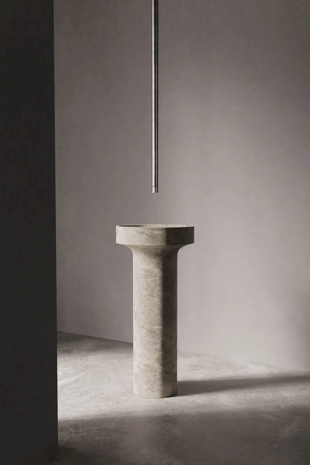 Inspiriert von der Klarheit und Symmetrie antiker Architektur: ETERNO hat die Stärke, zum Zentrum der Ruhe, einem Ort der Besinnung, in modernen Raumkonzepten zu werden. Angelehnt an die harmonische Form tragender Säulen verkörpert dieses Becken das Unveränderliche – Beständigkeit, Standhaftigkeit und Ewigkeit. Die sanften Rundungen von ETERNO verleihen ihm eine ruhige Präsenz, die sich mühelos in die Atmosphäre einfügt. Dank der flexiblen Platzierungsmöglichkeiten eröffnet ETERNO vielseitige Gestaltungsspielräume und schafft eine stilvolle Balance im Raum.