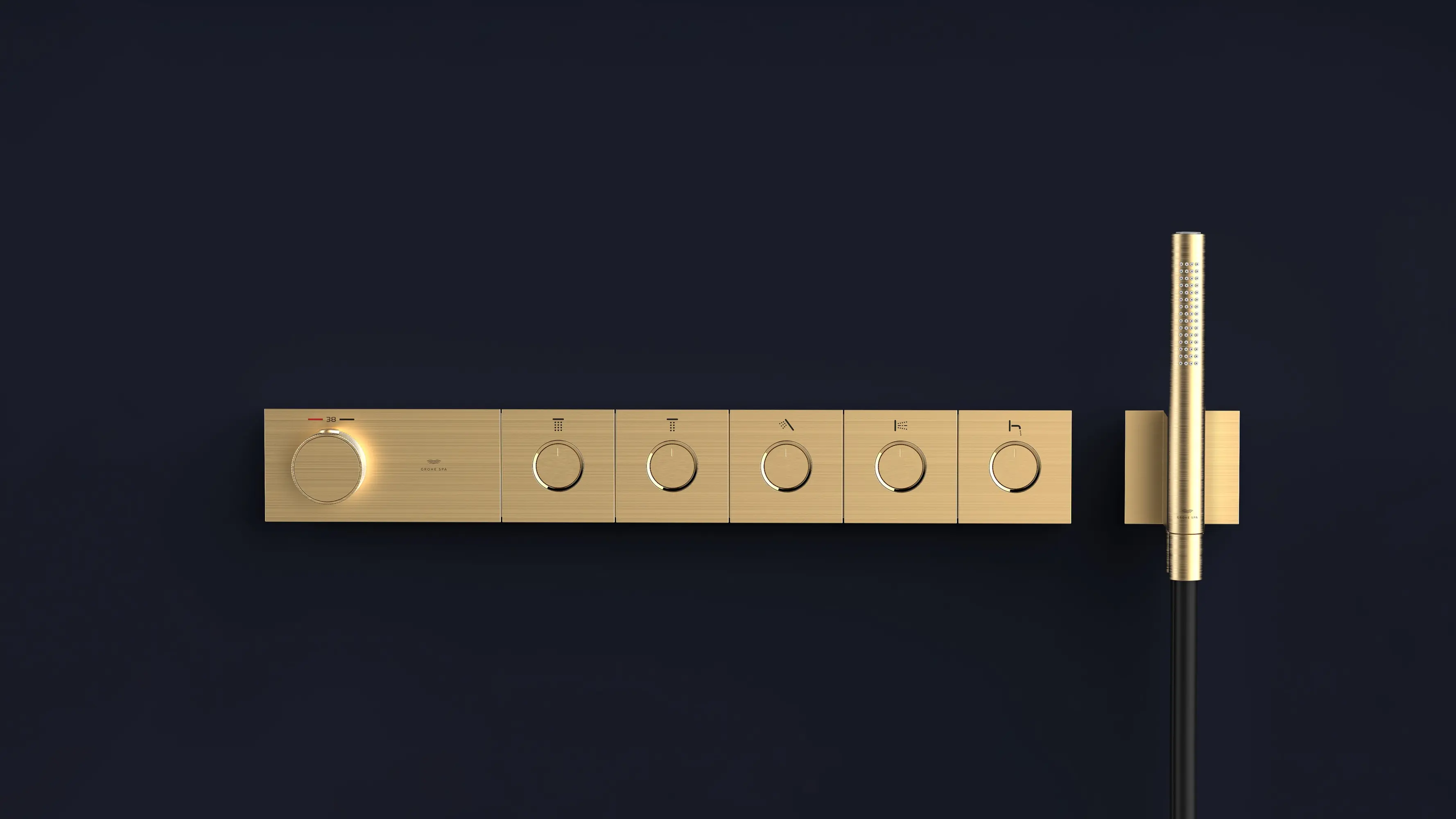 Das Grohtherm Aqua Tiles Duschsystem vereint minimalistisches Design mit raffinierten Metallelementen zu einem eleganten, modularen Wandrahmen. Die innovative SmartControl Technologie überzeugt durch präzise gearbeitete, fein gerändelte Metallknöpfe, die nicht nur ein außergewöhnliches haptisches Erlebnis bieten, sondern auch das Bekenntnis von GROHE zu höchster Design- und Innovationskompetenz unterstreichen.