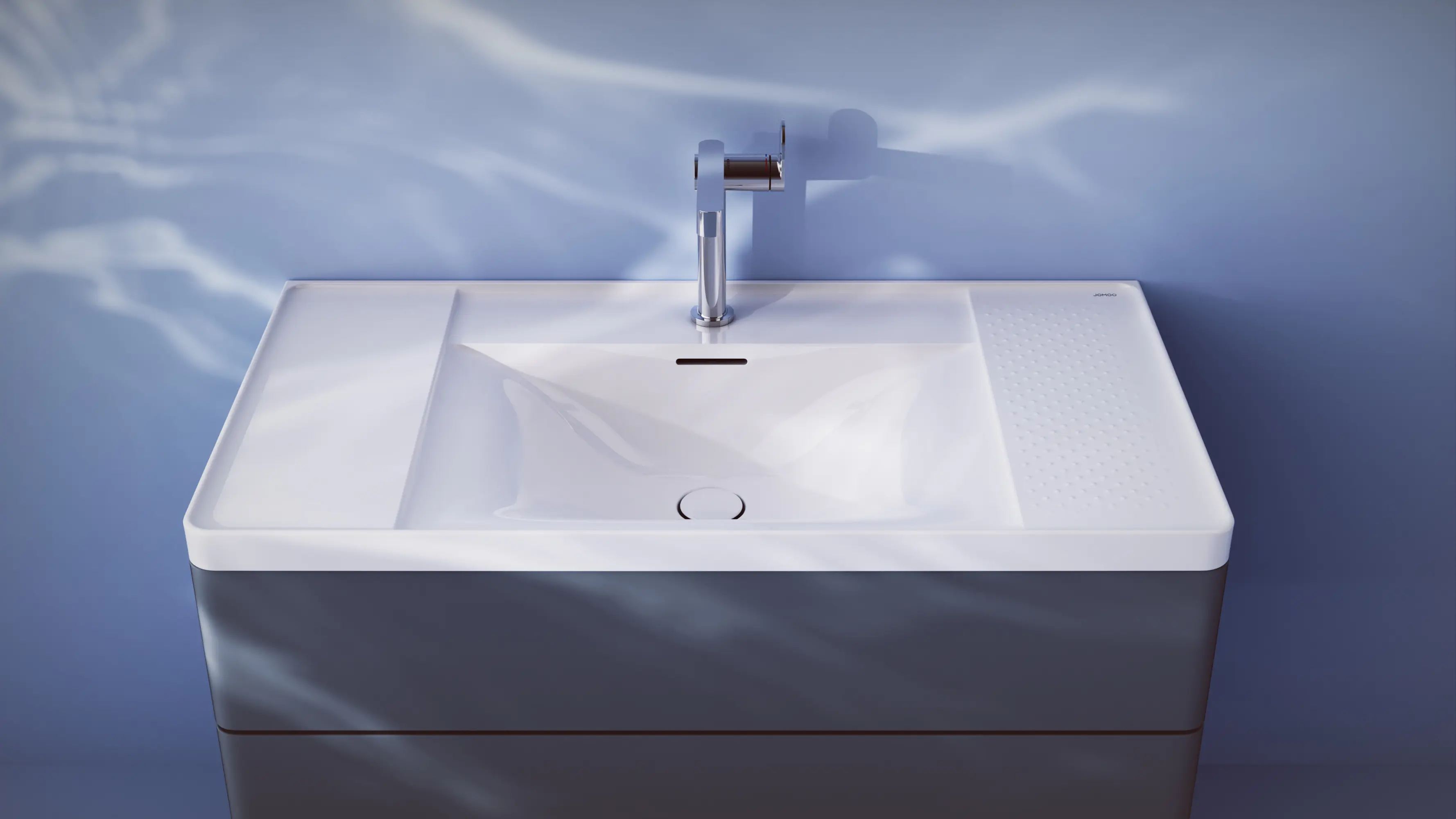 REEFS bietet eine funktionale, praktische Lösung für den Alltag. Unterschiedlich hohe Ablagen sorgen für Ordnung am Becken. Versenkte Seitenfächer schaffen leicht zu reinigende Bereiche für Pflegeprodukte oder temporär verschmutzende Gegenstände. Ein optionales 3D-Muster verhindert das Wegrollen in den Nassbereich. Eine tiefere Armaturenbank fängt Tropfen beim Betrieb auf. Nano-Glasur und sanftes Design sichern Ablauf, Sauberkeit und Hygiene. Zirkoniumkeramik ermöglicht feine Details, erhöht die Beständigkeit und verhindert Glasurrisse im Laufe der Zeit.