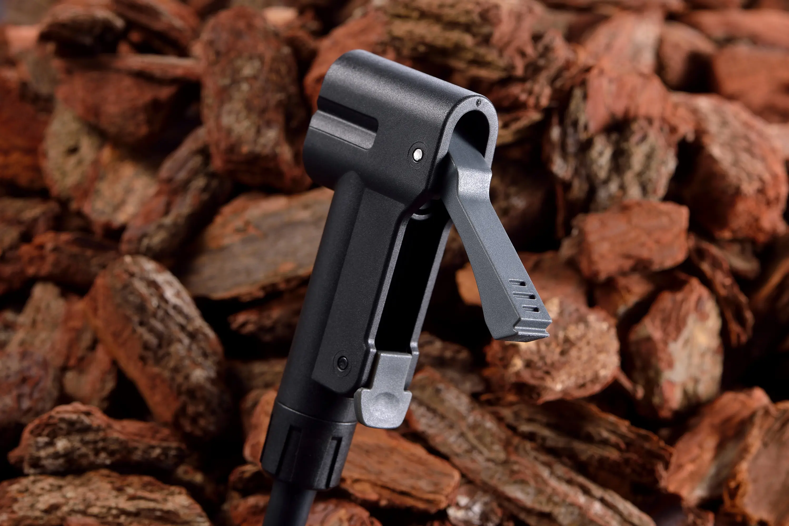 Unser innovatives Pumpenkopf-Design revolutioniert das Aufpumpen von Reifen. Dank des neuen Einhand-Designs lässt sich der Pumpenkopf einfach durch Herunterdrücken des Hebels befestigen und per Knopfdruck wieder lösen – schnell und mühelos. Der neu entwickelte Dual Valve Pumpenkopf verhindert Funktionsausfälle, selbst wenn Reifendichtmittel eindringt, und sorgt für zuverlässiges Aufpumpen. Da immer mehr tubeless Reifen den Markt erobern und für mehr Sicherheit auf Dichtmittel angewiesen sind, bietet unsere Lösung höchste Benutzerfreundlichkeit, löst ein häufiges Problem und hebt unser Produkt klar von der Konkurrenz ab.