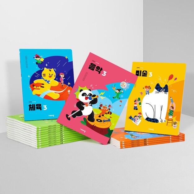 ‘Das Schulbuch für die Grundschüler-Fächer Musik, die bildende Kunst, Leibeserziehung’ von VISANG zeigt, wie die Tierfiguren im Fantasieraum verschiedene künstlerische Aktivitäten mit viel Spaß vollziehen. Dadurch können die Lernenden selbst mit Kreativität die Ausdrucksfähigkeit verbessern. Die Grafiken in den zwei Büchern wurden zusammengesetzt, damit das Lernen nicht unterbricht wird und natürlich weiterfließt. Durch helle, fröhliche Farben und die mehrdimensionale Nachbearbeitung der Oberfläche ist die visuelle Freude zu spüren.