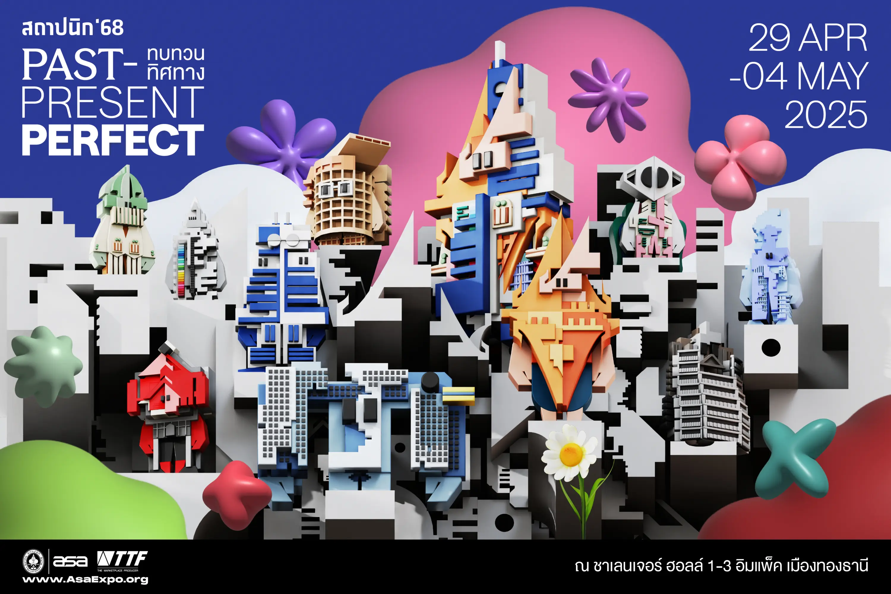 Past Present Perfect: Richtung neu denken. Dieses Projekt greift 90 Jahre architektonische Entwicklung in Thailand auf, indem es deren Formen durch grafische Elemente interpretiert. Diese Elemente – abstrahiert und destilliert – werden durch grafische Linien visuell miteinander verbunden und heben so das Zusammenspiel zwischen vergangener Perfektion und gegenwärtigem Einfluss hervor. Das Design spiegelt die vielschichtigen Auswirkungen architektonischer Ideen, kultureller Veränderungen und stilistischer Übergänge über verschiedene Epochen hinweg wider. Durch die Verknüpfung von Vergangenheit, Gegenwart und Zukunft versucht Past Present Perfect nicht nur, die historische und zeitgenössische thailändische Architektur neu zu betrachten, sondern auch neue Möglichkeiten für ihre zukünftige Ausrichtung zu erkunden.