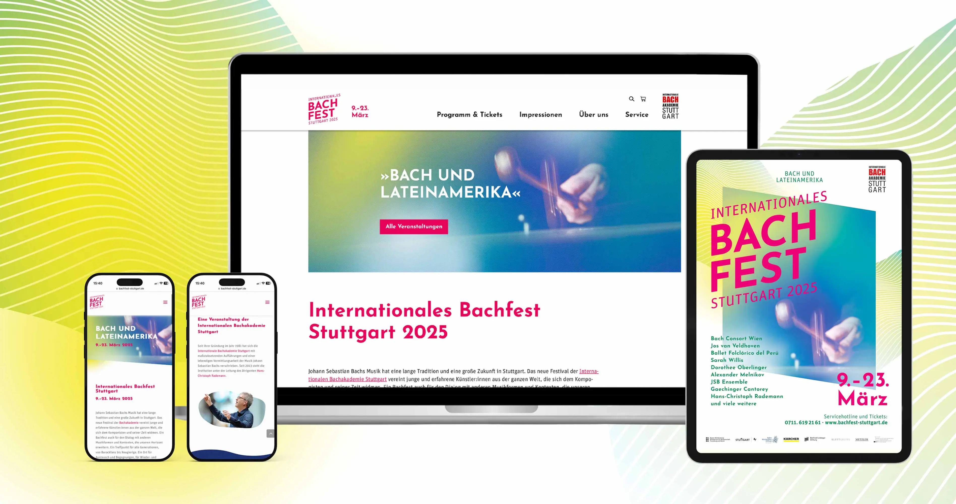 Ein ausdrucksstarkes Corporate Design für ein inspirierendes musikalisches Erlebnis. Das Internationale Bachfest Stuttgart hat 2025 erstmals stattgefunden. Die Marken- und Designagentur Jung:Kommunikation entwickelte dafür das Corporate Design. Das Erscheinungsbild basiert auf einem strategischen Gestaltungskonzept, das die Verbindung von musikalischer Tradition und moderner Gestaltung sichtbar macht. Zentrales Element ist eine markante Wort-Bild-Marke, ein flexibles Keyvisual und eine lebendige Farbwelt. Der neue Markenauftritt wird auf verschiedenen Kanälen eingesetzt – von Plakaten bis hin zu großen Displays im öffentlichen Raum.