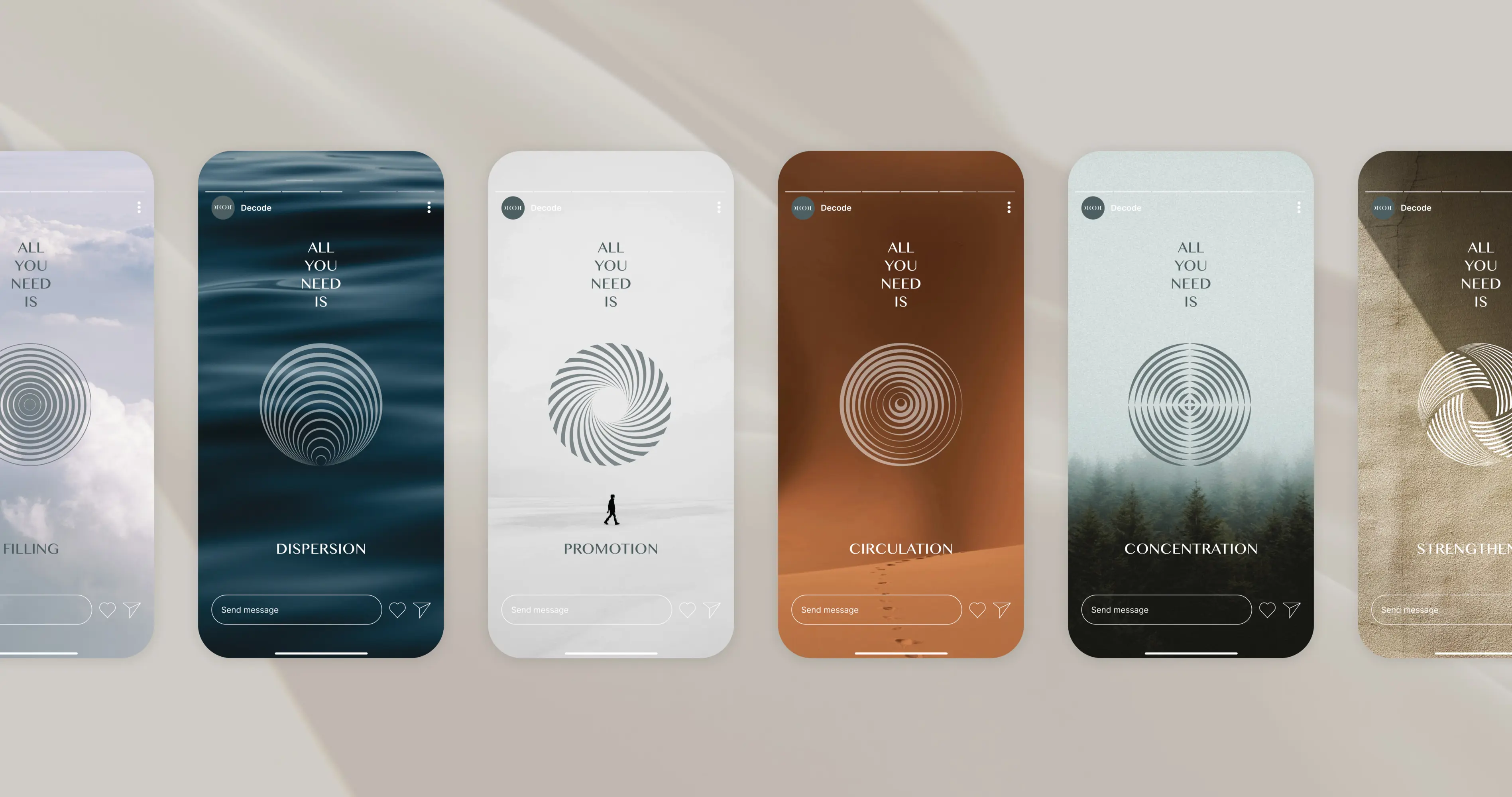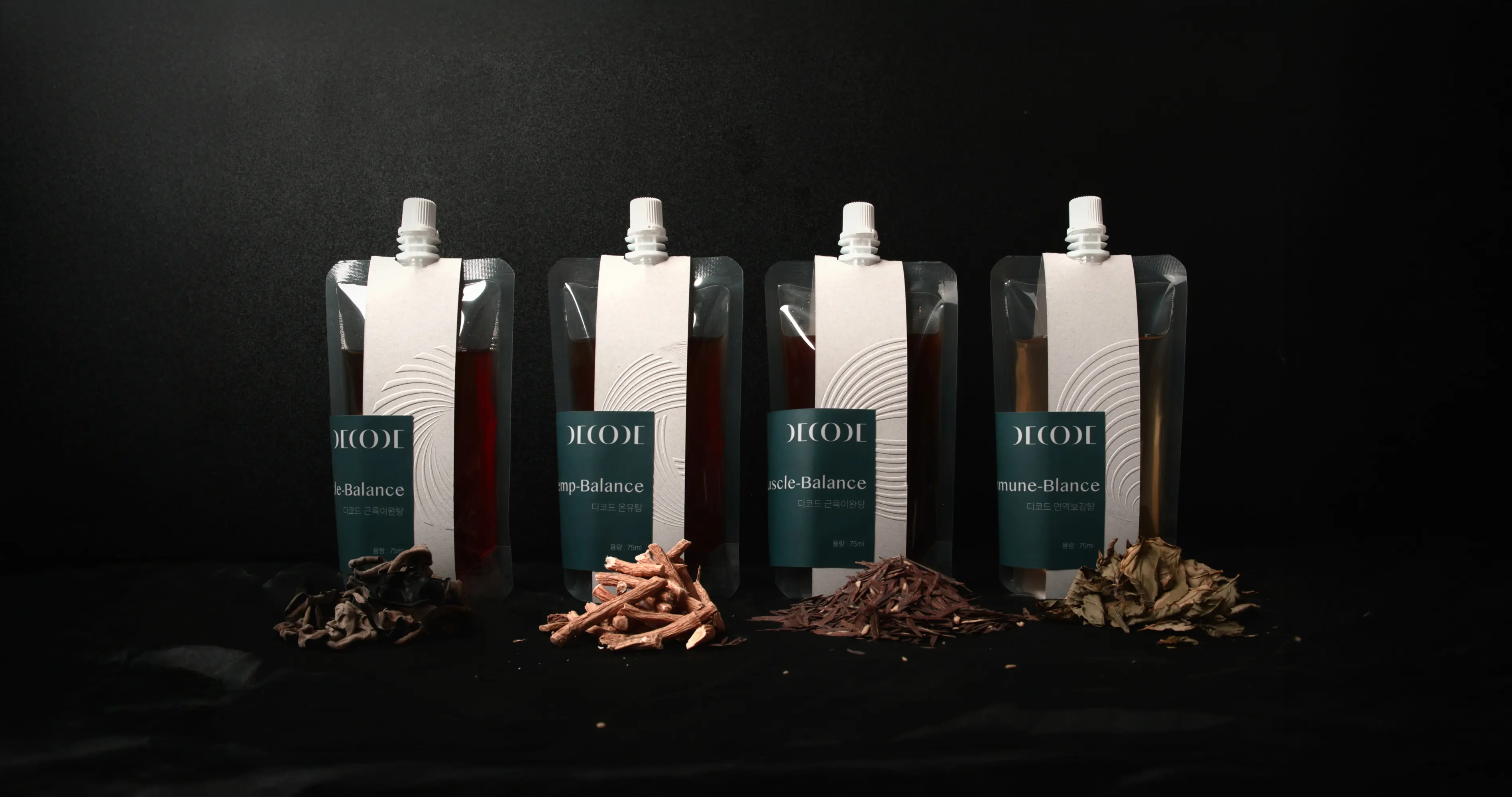 DECODE verbessert die Zugänglichkeit zur koreanischen Medizin. Die visuelle Identität basiert auf körperlicher Balance. Das Logo zeigt „Decode" als lesbare Chiffre mit verfeinerten Linienenden für bessere Lesbarkeit und verkörpert das Entschlüsseln. Es ermöglicht Nutzern, den Wert des Verstehens auf einen Blick zu erfassen und stärkt die Wiedererkennung. Das grafische Motiv zeigt den Qi-Fluss – zentrale Energie der koreanischen Medizin – als Piktogramme mit Behandlungszielen und hilft Patienten, ihre Mittel besser zu verstehen. Mit stabilen Proportionen und ruhigem Ton sorgt das System für Klarheit und verbindet Tradition mit moderner Pflege.