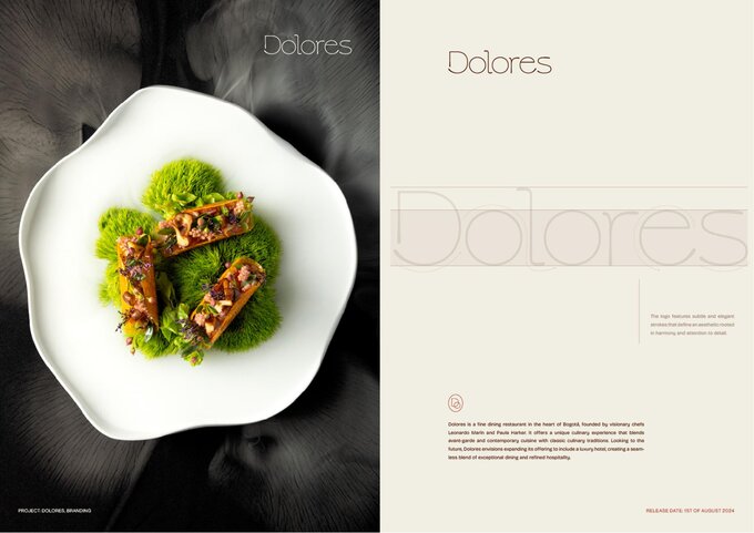 Dolores ist ein Fine-Dining-Restaurant in Bogotá, das sich mit seinem Konzept des 'Quiet Luxury' als Maßstab für informellen Luxus etablieren möchte. Dieses Konzept kombiniert zeitgenössische Küche mit klassischen Traditionen und bietet ein anspruchsvolles, zugleich warmes und zugängliches Erlebnis. Das Restaurant verbindet mediterrane Küche mit vielfältigen Einflüssen, jedes Gericht wird mit den frischesten, hochwertigsten Zutaten zubereitet. Ziel des Projekts ist es, die visuelle Identität von Dolores zu gestalten, um Werte wie Gastfreundschaft, Komfort, Minimalismus und Eleganz widerzuspiegeln.