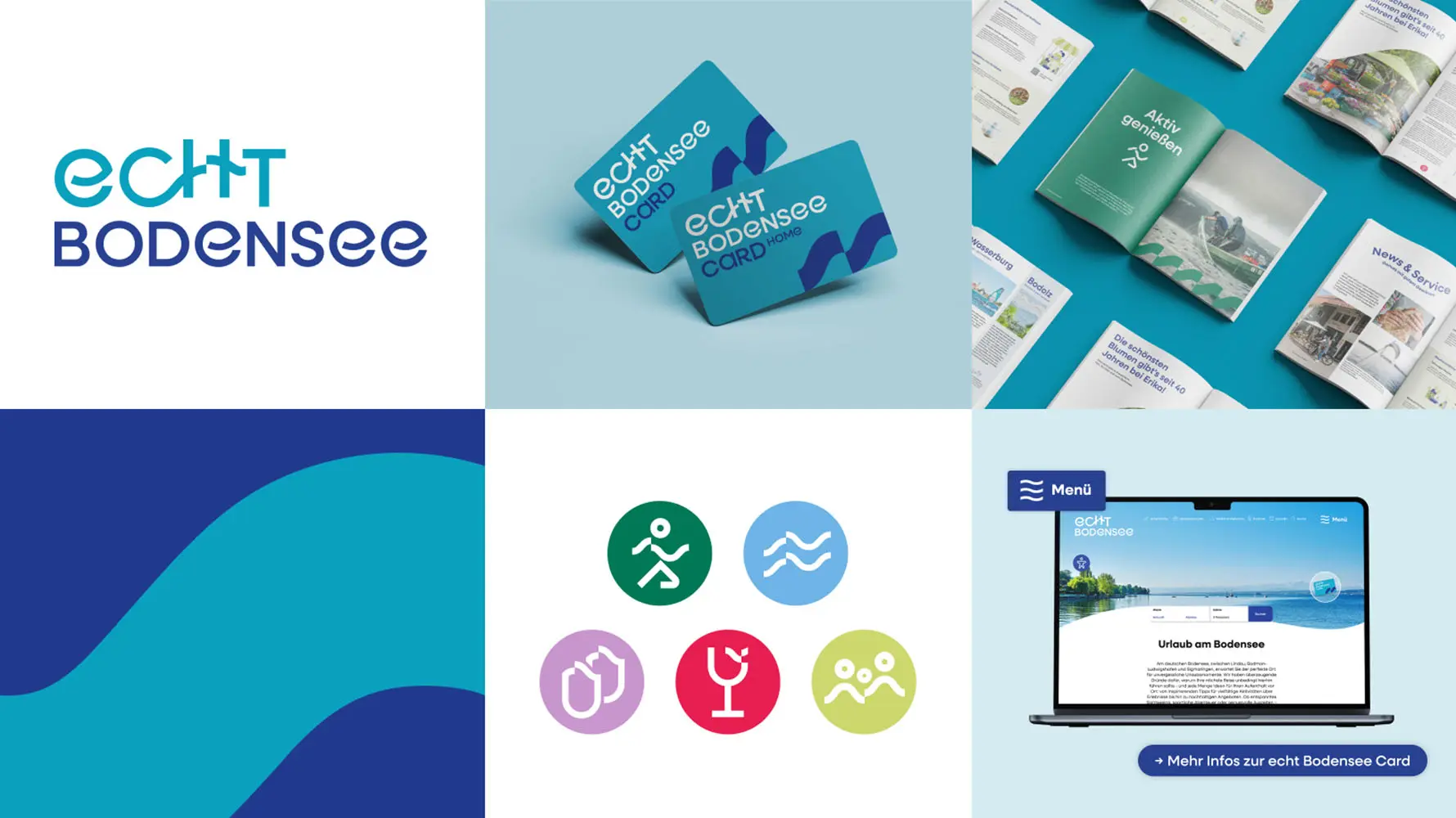 „Echt Bodensee" macht die Vielfalt der Region spürbar – als Ort, an dem Natur, Kultur und Kulinarik zusammenfinden. Für den Markenrelaunch wurde das Profil strategisch geschärft und visuell neu interpretiert. Jung:Kommunikation entwickelte ein flexibles Designsystem, das die regionale Identität erlebbar macht: Eine dynamische Welle als Keyvisual, eine Farbwelt aus Blau, Türkis und lebendigen Akzenten, moderne Typografie und eine authentische Bildsprache voller Weite und Details. Der Claim „Wo Wasser Welten verbindet“ fasst die Emotion in Worte und verleiht der Marke eine starke, zeitgemäße Strahlkraft.