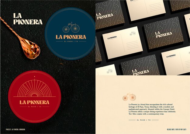 Das Branding für das »La Pionera«-Restaurant vereint gekonnt texanische und mexikanische Einflüsse in einer zeitgenössischen visuellen Identität. Mit subtilen Art-Deco-Elementen und einer Wüstenfarbpalette spiegelt »La Pionera« die kulturelle Verschmelzung wider und bietet eine konsistente Kommunikation durch durchdachte Gestaltungslösungen.