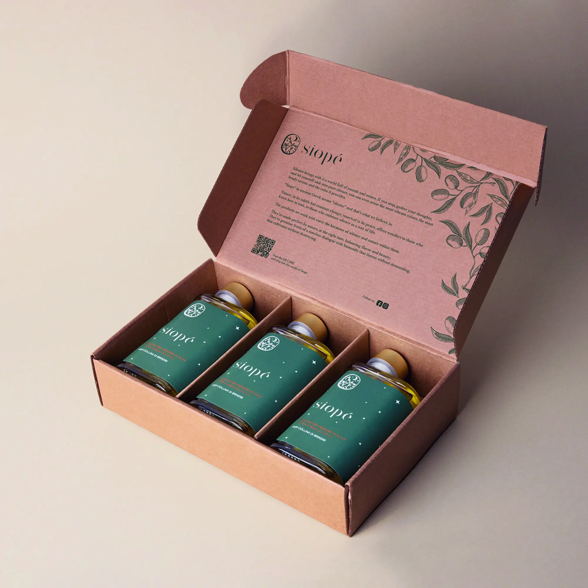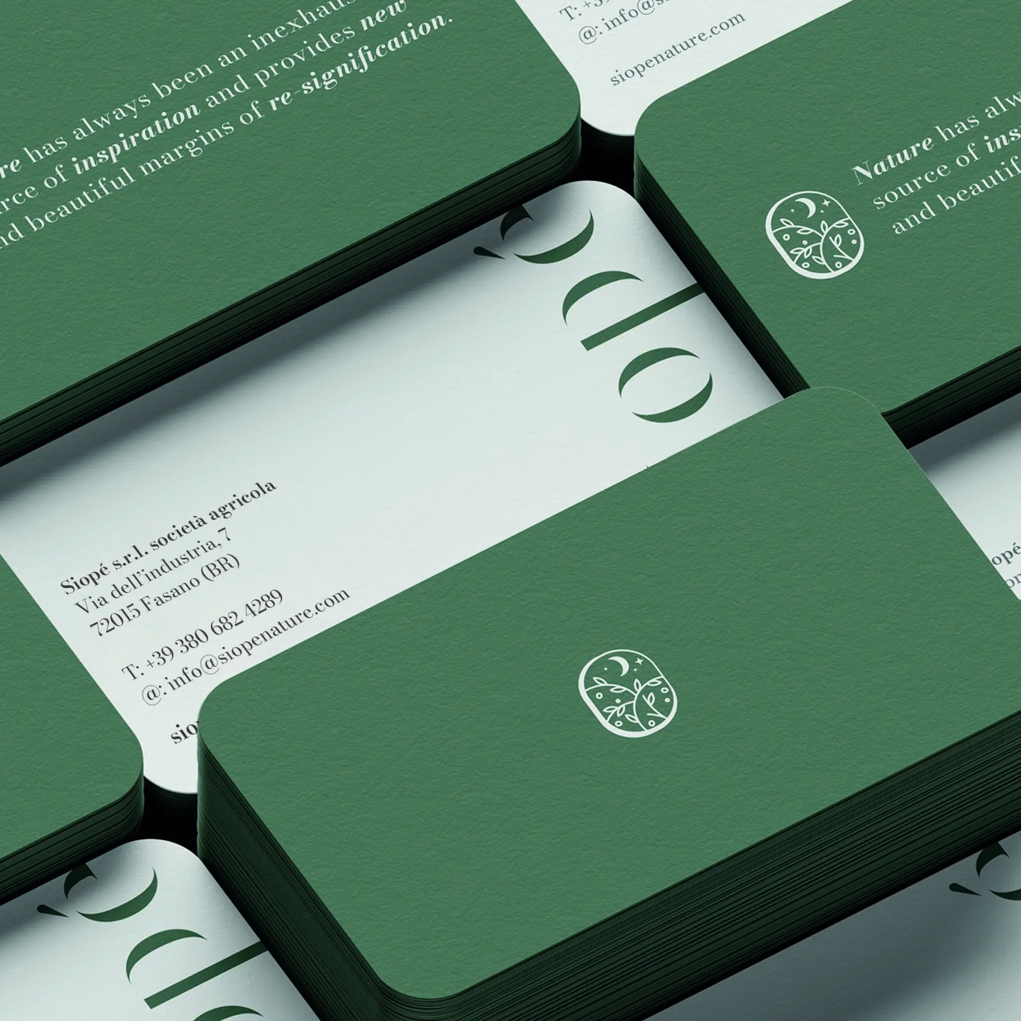 Das Wort „Siope“ stammt aus dem Altgriechischen und lässt sich mit „Stille“ übersetzen. Stille, wie das langsame Vergehen der Zeit, wie die besondere Stille in der Natur. Unsere nachhaltigen gastronomische und kosmetischen Produkte erzählen von dieser besonderen Stille der Natur. Der Produktionszyklus respektiert außerdem das Leben der Pflanze und vermeidet Abfall. Das Logos symbolisiert ein Guckloch in eine nächtliche Landschaft und kombiniert dieses mit einem minimalen Schriftzug. Eine schnörkellose Schönheit, die die Rhythmen der Natur widerspiegelt und in der vertrauten Stille wurzelt.