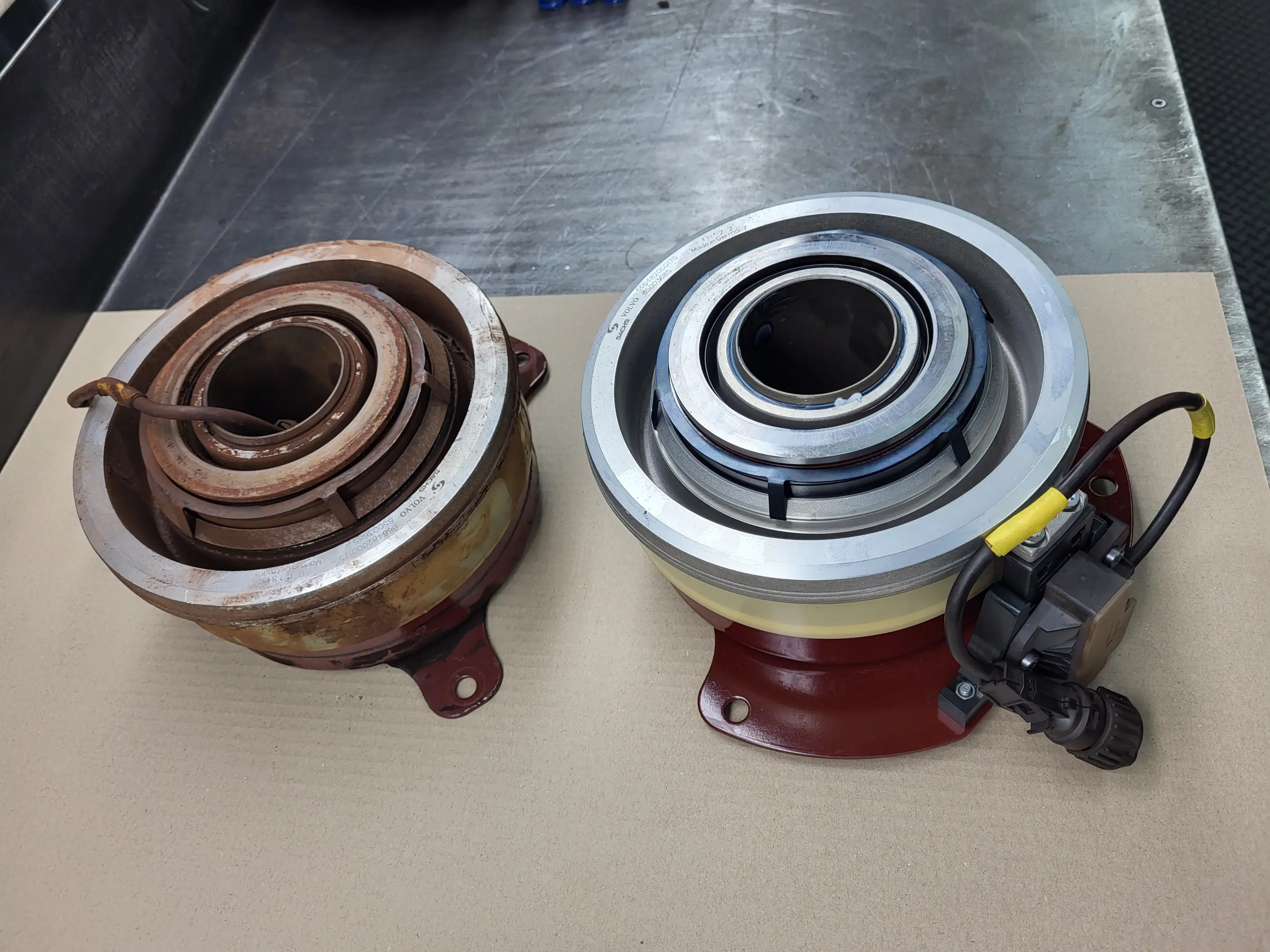 Unser neustes Projekt bei ZF-Bielefeld ist die Aufarbeitung eines Ausrücksystems (DoppelConAct). Wir haben hier am Standort einen optimalen Kreislauf aufgebaut. Mit dem Kunden Volvo fertigen wir die Produkte in Bielefeld neu und haben einen Einfluss auf die Optimierungen im Design. Nach Rückführung der gebrauchten Ausrücker, arbeiten wir diese hier auf und geben den Altteilen so weitere Leben in den Fahrzeugen. Der Kunde Volvo hat einen Preisvorteil und die gewünschte Nachhaltigkeit wird gelebt. Es ist ein optimaler Kreislauf.
