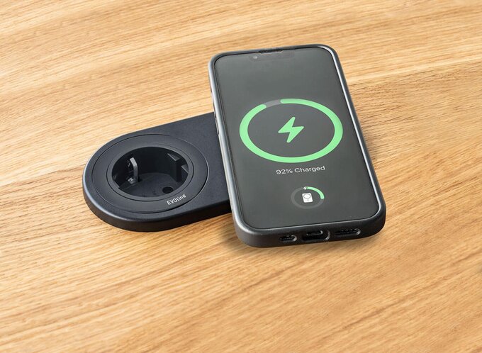 Der One DisQ ist ein Erweiterungsmodul zum Laden von induktivfähigen Smartphones. Er kann problemlos mit jedem EVOline One installiert und nachgerüstet werden, ohne die vorhandene Einrichtung zu verändern. Die Steckdose oder die Datenmodule des One bleiben während des Ladevorgangs frei und können gleichzeitig für weitere Anwendungen genutzt werden.