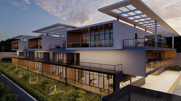 Durch die moderne Gestaltung der Kiyovu Residences wird der traditionelle Wohnungsflur zu einem Teil des Außenraums umdefiniert. Die oberen Wohnungen schaffen durch ihre Ausleger und die intelligent platzierten Vordächer einen harmonischen Rhythmus, der sowohl ästhetisch als auch funktional überzeugt. Diese Herangehensweise bietet eine neue Perspektive auf das Wohnen in urbanen Umgebungen.