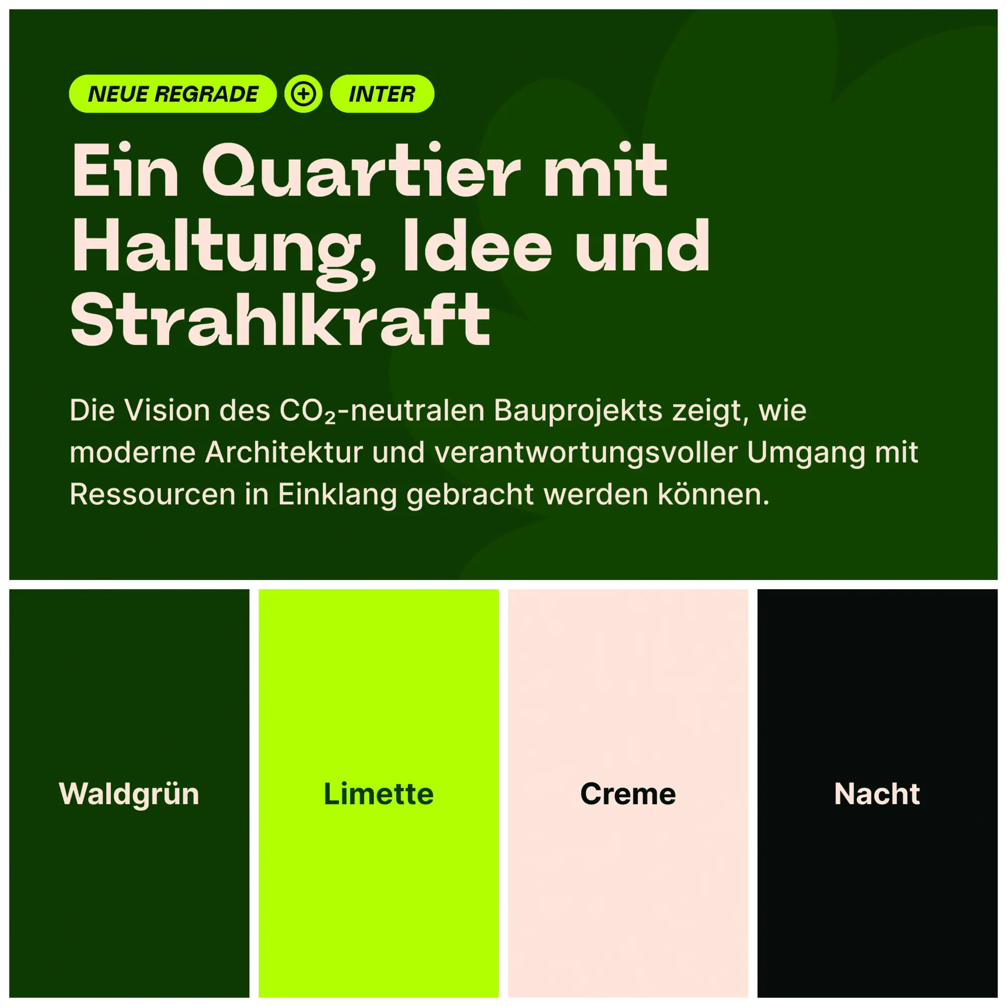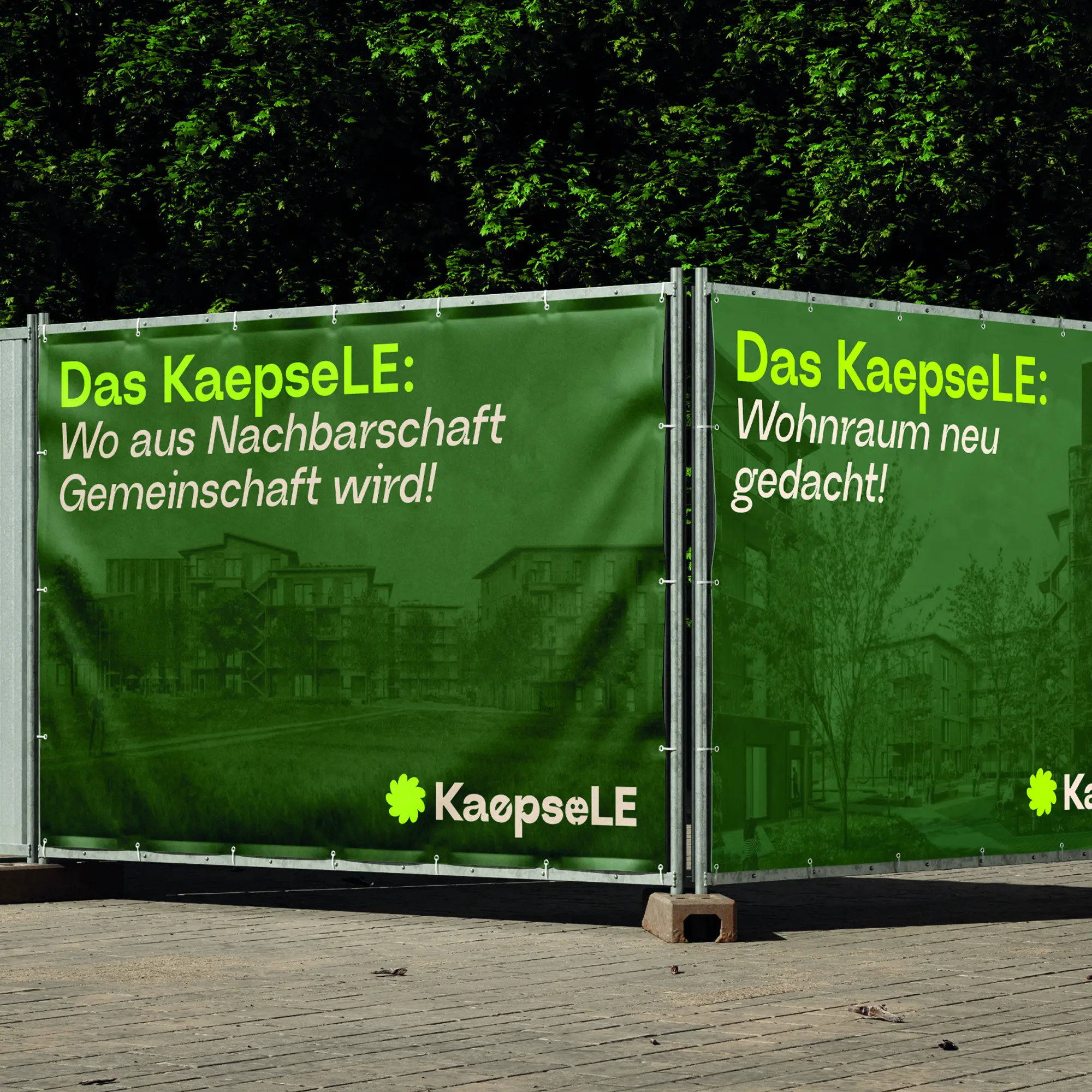 Das KaepseLE ist ein innovatives Bauprojekt für ein klimaneutrales Wohnquartier. Der Name steht als Akronym für Klimaschutz und -anpassung, emissionsfreies Bauen, Pflanzen, Stoffkreisläufe und Energievernetzung in Leinfelden-Echterdingen (LE). Die Idee, diese Prinzipien gestalterisch sichtbar zu machen, war Ausgangspunkt für das entwickelte Design. Entstanden ist ein modulares Branding, das Wiederverwendung und Ressourceneffizienz auch im visuellen Konzept aufgreift und die Haltung des Projekts konsequent transportiert. Ökologisch, ökonomisch und sozial nachhaltig erdacht.