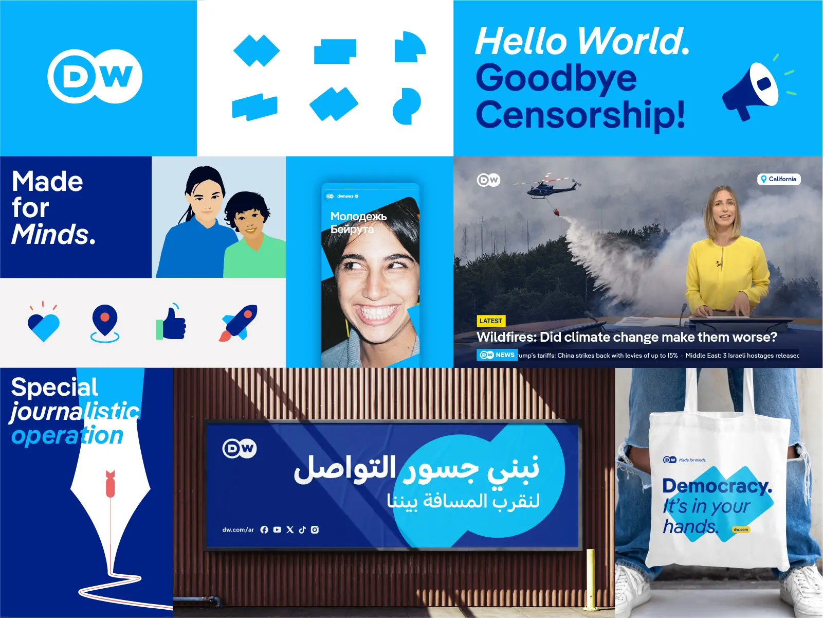Das neue Corporate Design der Deutschen Welle (DW) basiert auf dem Konzept des "Dialogs". Es kombiniert flexible geometrische Formen aus dem DW-Logo mit einer erweiterten Farbpalette, um eine dynamische visuelle Sprache zu schaffen. Die maßgeschneiderte Schriftart DW Pangea und aktualisierte Icons verbessern die visuelle Kommunikation. Das modulare Designsystem ermöglicht eine konsistente und anpassungsfähige Markenpräsenz über verschiedene Plattformen hinweg und stärkt die Position der DW als unabhängige Nachrichtenquelle.