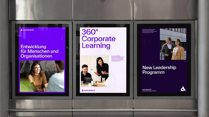Der neue Markenauftritt der »Haufe Akademie« stellt die Relevanz von Weiterbildung in den Vordergrund und spricht sowohl individuelle Lernende als auch HR-Entscheider*innen an. Durch ein klares und inspirierendes Design wird die Weiterentwicklung vom Seminaranbieter zum umfassenden Learning & Development-Partner eindrucksvoll verdeutlicht.